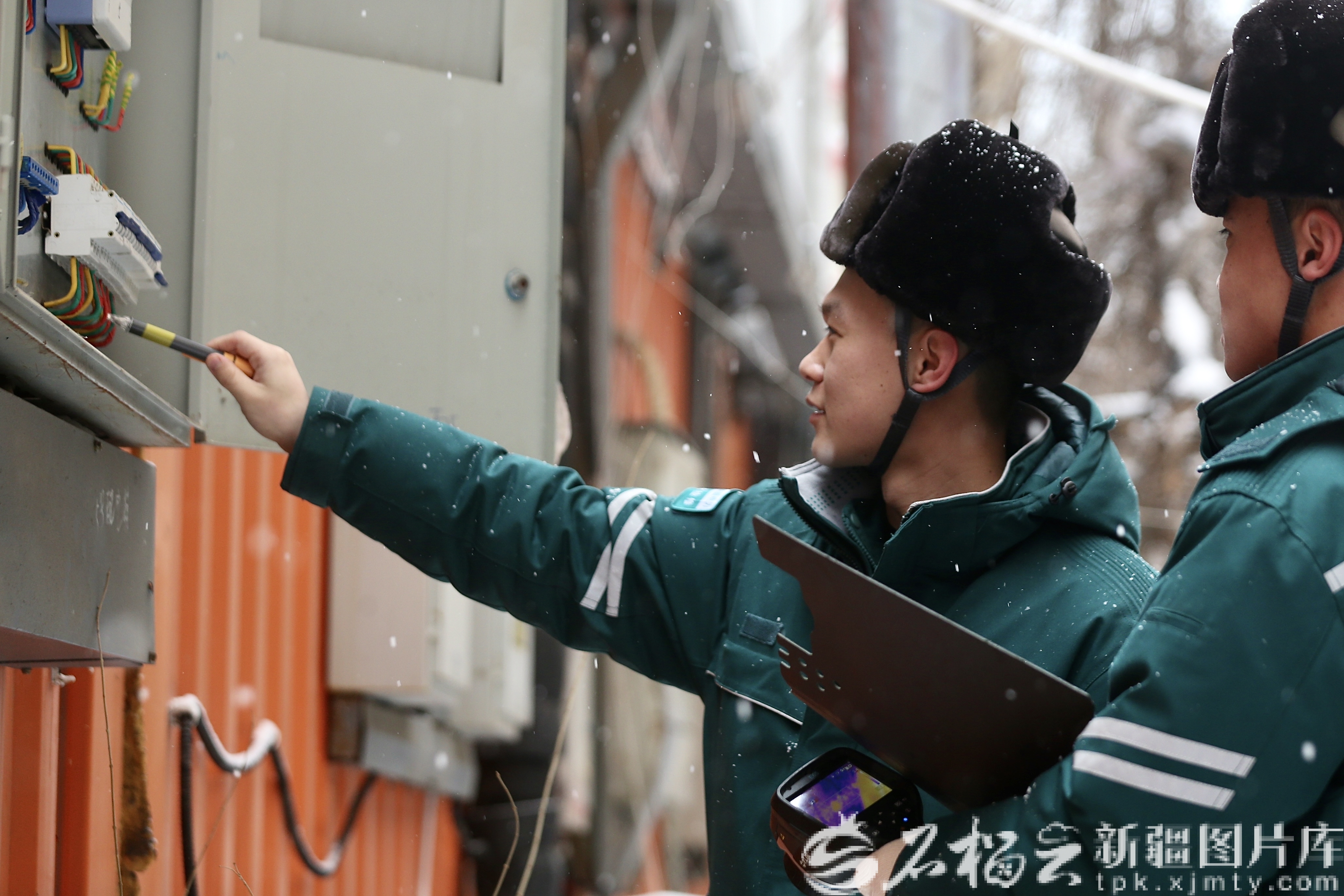 3月11日,國(guó)網(wǎng)烏魯木齊市南供電公司人民供電所工作人員正在日月星光集裝箱小鎮(zhèn)巡檢,保障商戶用電安全。