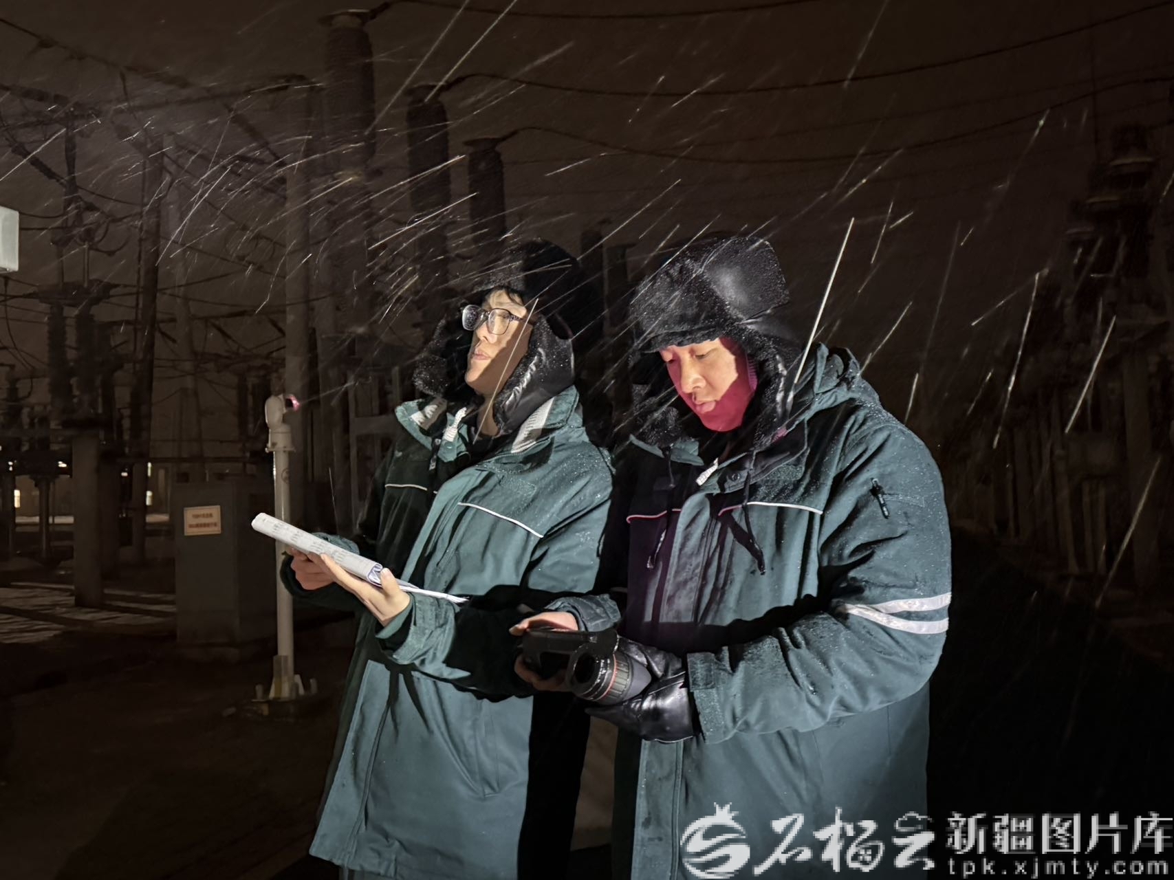 3月11日凌晨,國(guó)網(wǎng)昌吉供電公司變電運(yùn)維七班值班員在220kV吉木薩爾變電站開(kāi)展寒潮預(yù)警保電特巡特護(hù)。蘇比 攝