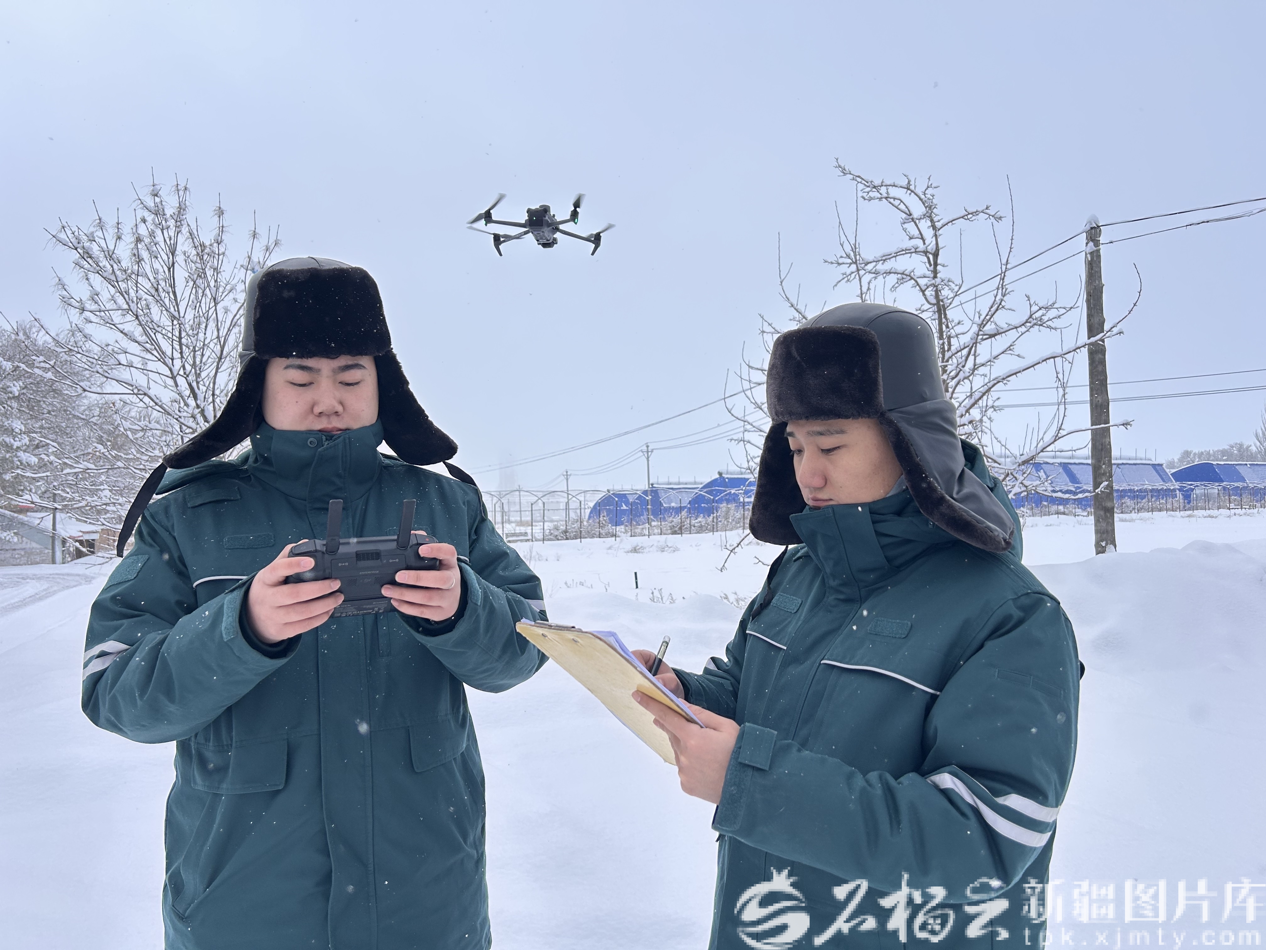 3月10日,國(guó)網(wǎng)塔城供電公司工作人員在10千伏泉園二線050號(hào)桿處用無(wú)人機(jī)進(jìn)行巡視。依米拉德 攝