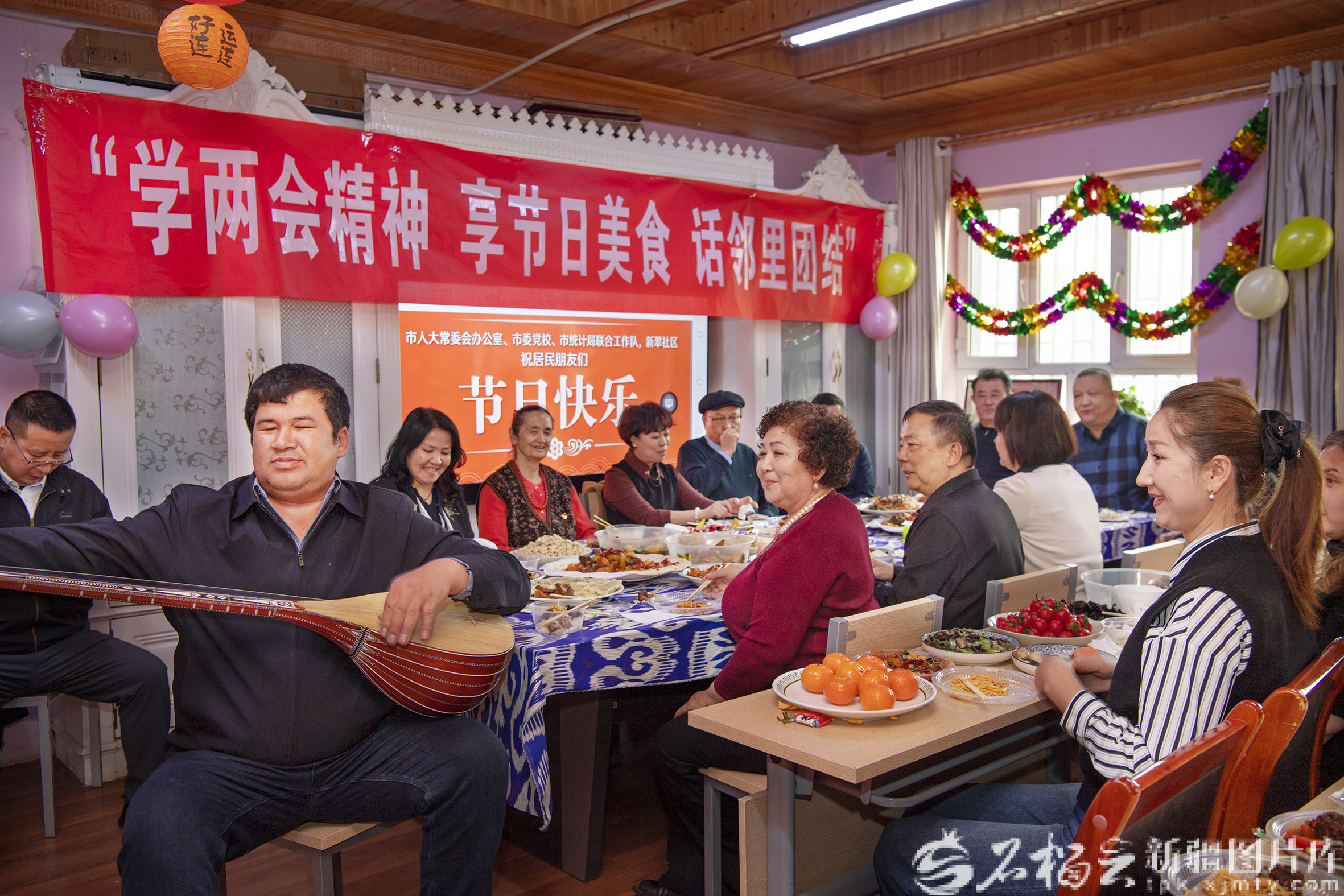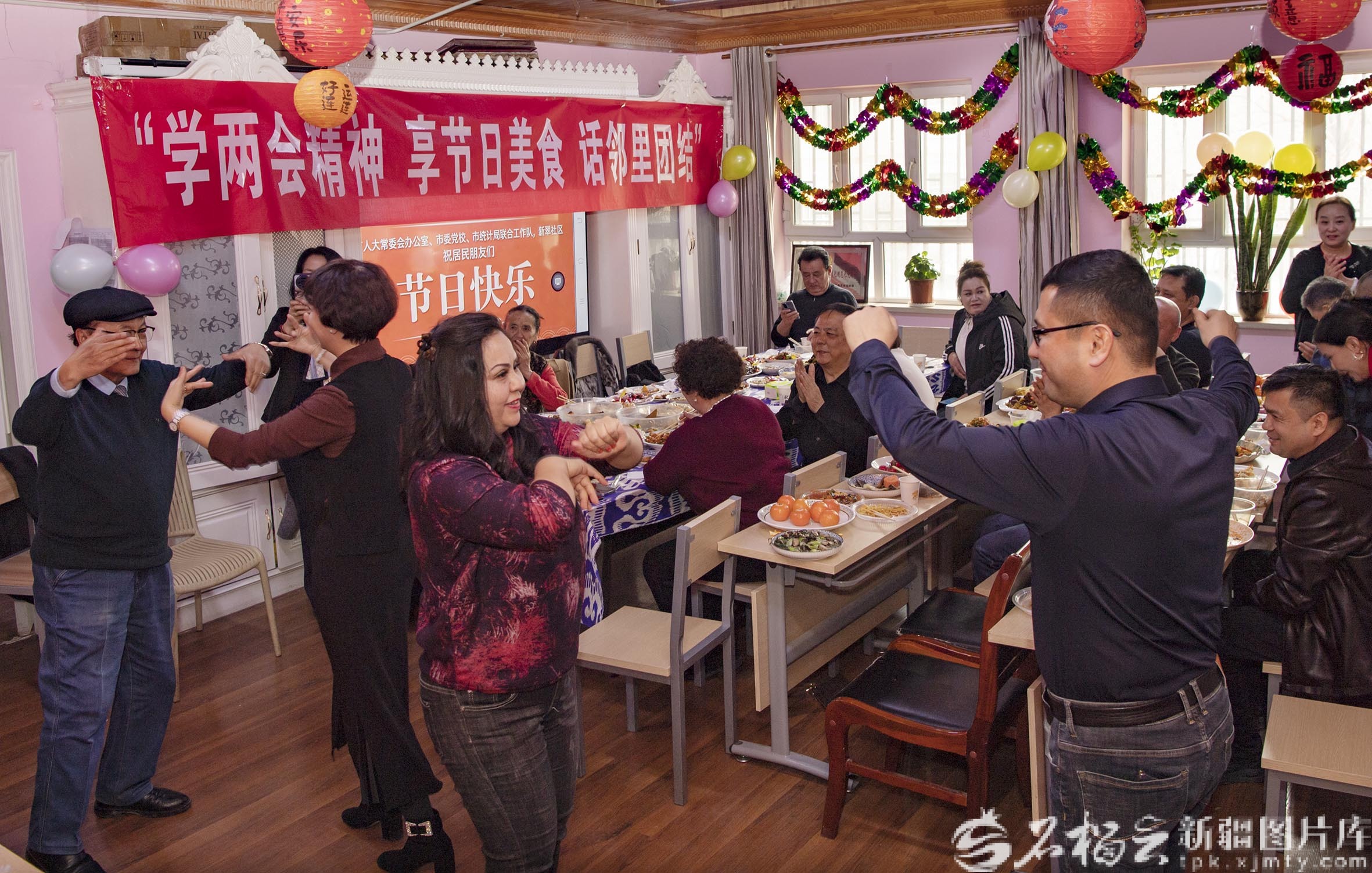 天山網(wǎng)-新疆日?qǐng)?bào)訊(記者約提克爾·尼加提攝影報(bào)道)3月18日,烏魯木齊市天山區(qū)大灣街道新翠社區(qū)洋溢著喜慶溫馨的氛圍。烏魯木齊市人大常委會(huì)辦公室、市委黨校、市統(tǒng)計(jì)局駐社區(qū)工作隊(duì)聯(lián)合社區(qū)開(kāi)展“學(xué)兩會(huì)精神 享節(jié)日美食 話鄰里團(tuán)結(jié)”活動(dòng),各族居民歡聚一堂,共敘情誼。