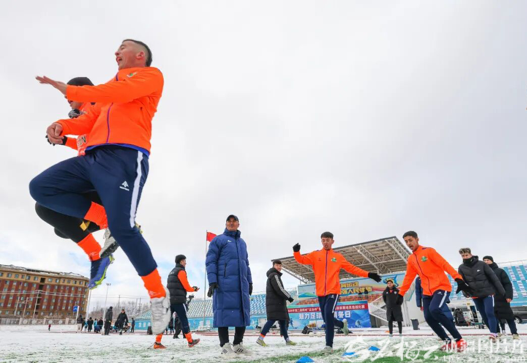 3月11日,2026年第二屆博爾塔拉蒙古自治州 “足協(xié)杯”選拔賽暨新疆足球超級(jí)聯(lián)賽球員選拔賽在博樂市市民體育場(chǎng)舉行。圖為球員進(jìn)行賽前熱身。于蘇甫·艾尼