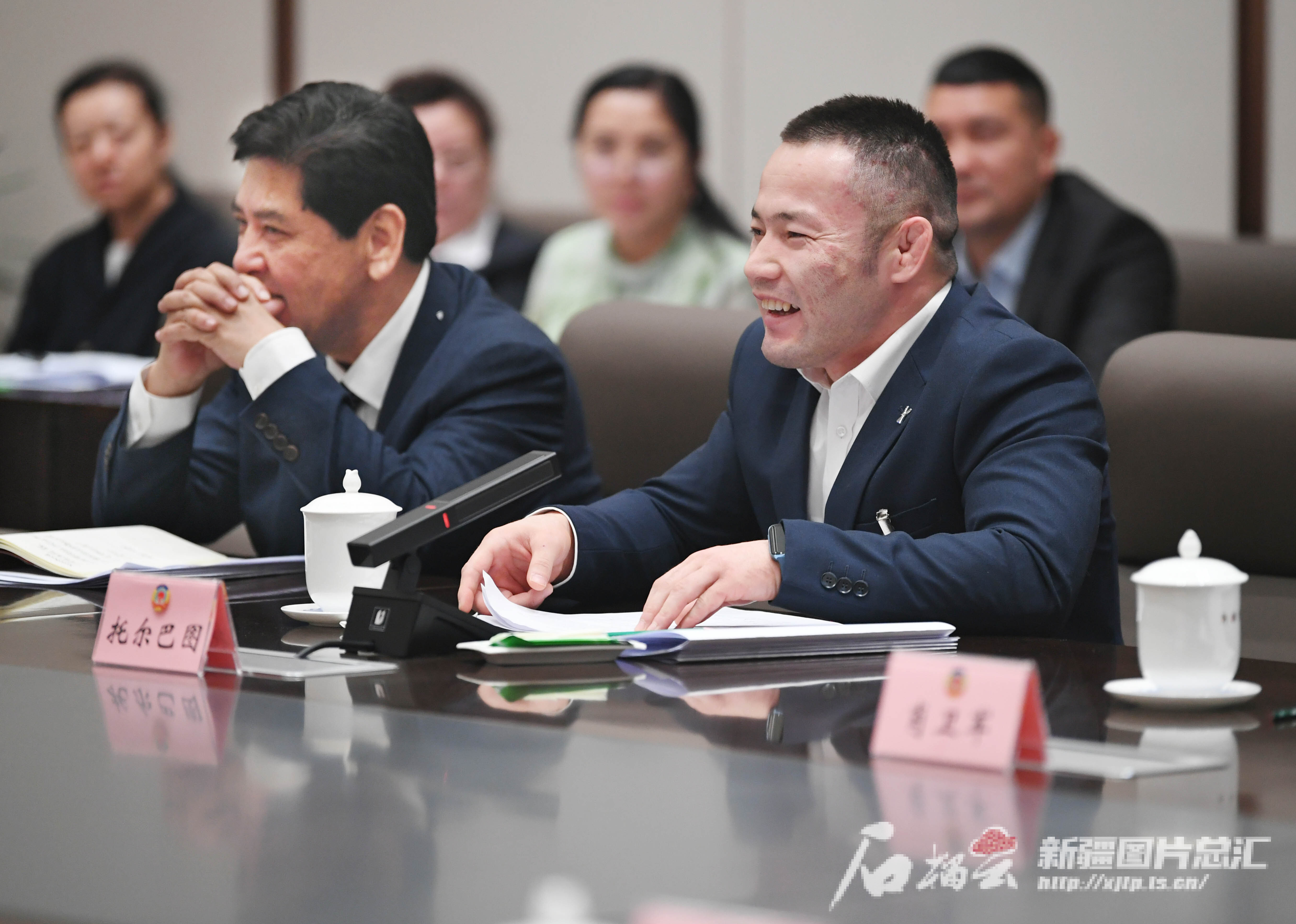 1月20日,巴德?tīng)柡獭ぐ吞貑听埼瘑T在分組討論時(shí),圍繞發(fā)展清潔能源等內(nèi)容發(fā)言。天山網(wǎng)-新疆日?qǐng)?bào)記者 約提克爾·尼加提攝