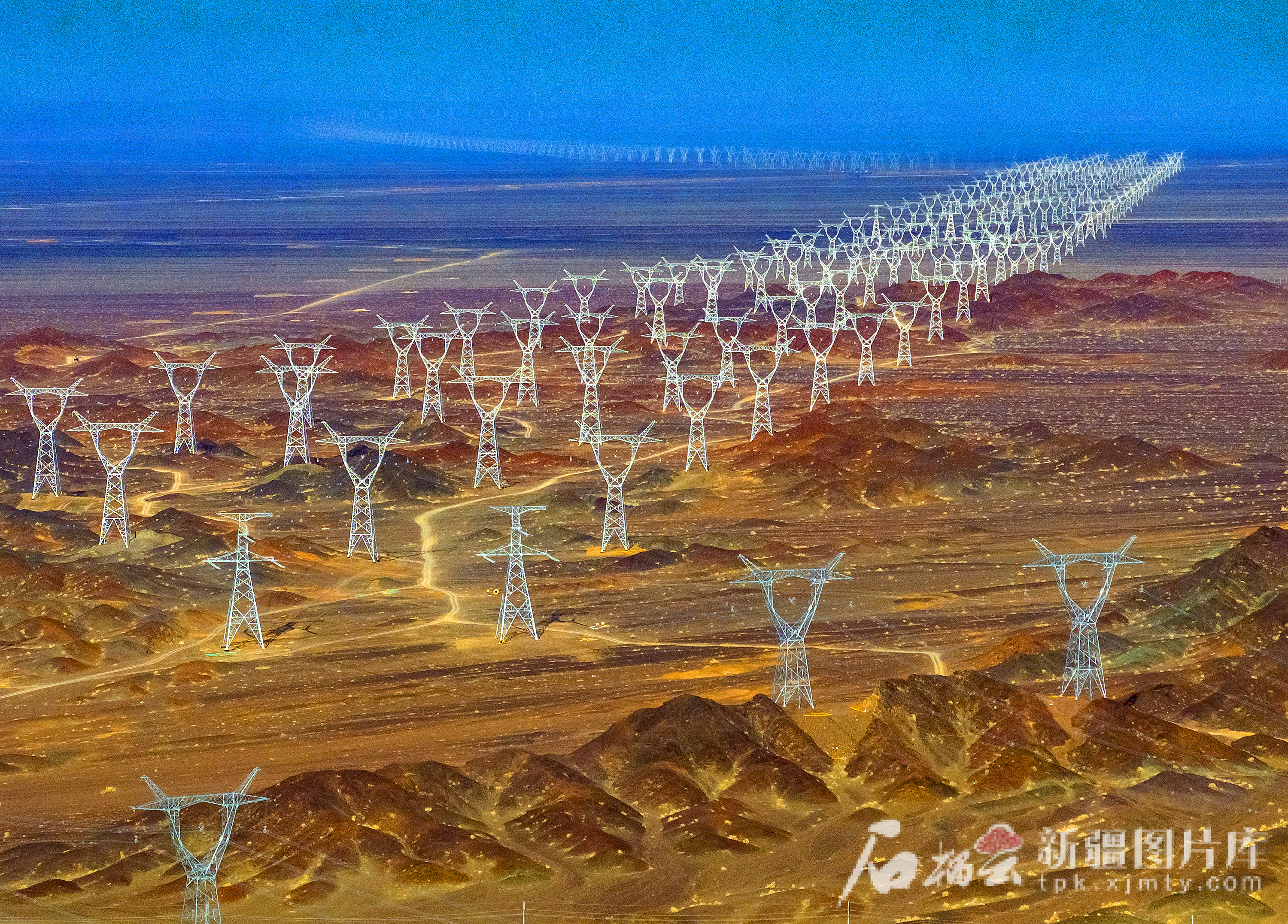 6月15日,位于哈密市巴里坤哈薩克自治縣三塘湖鎮(zhèn)的哈密—重慶±800千伏特高壓直流輸電工程(即“疆電入渝”工程)起點(diǎn)——巴里坤換流站外,輸電線路向遠(yuǎn)方延伸。金煒攝