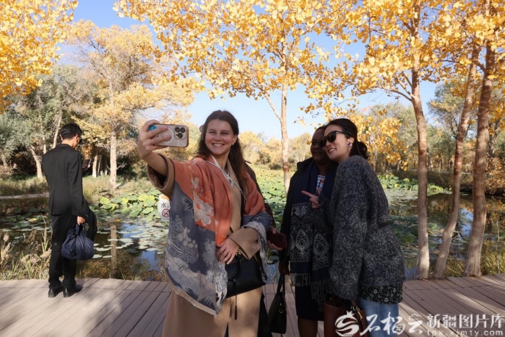 10月的新疆,秋意正濃,13日上午,參訪團(tuán)一行前往澤普金湖楊國家森林公園參觀考察。湛藍(lán)天空、清澈湖水、金色胡楊,宛如一幅絕美畫卷。