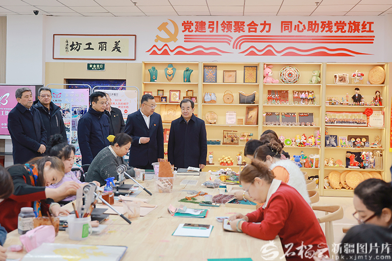 12月30日,自治區(qū)黨委書記陳小江在自治區(qū)殘聯(lián),聽取殘疾人就業(yè)創(chuàng)業(yè)情況介紹,察看殘疾人制作手工藝品、非遺產(chǎn)品等。天山網(wǎng)-新疆日?qǐng)?bào)記者 崔志堅(jiān)攝