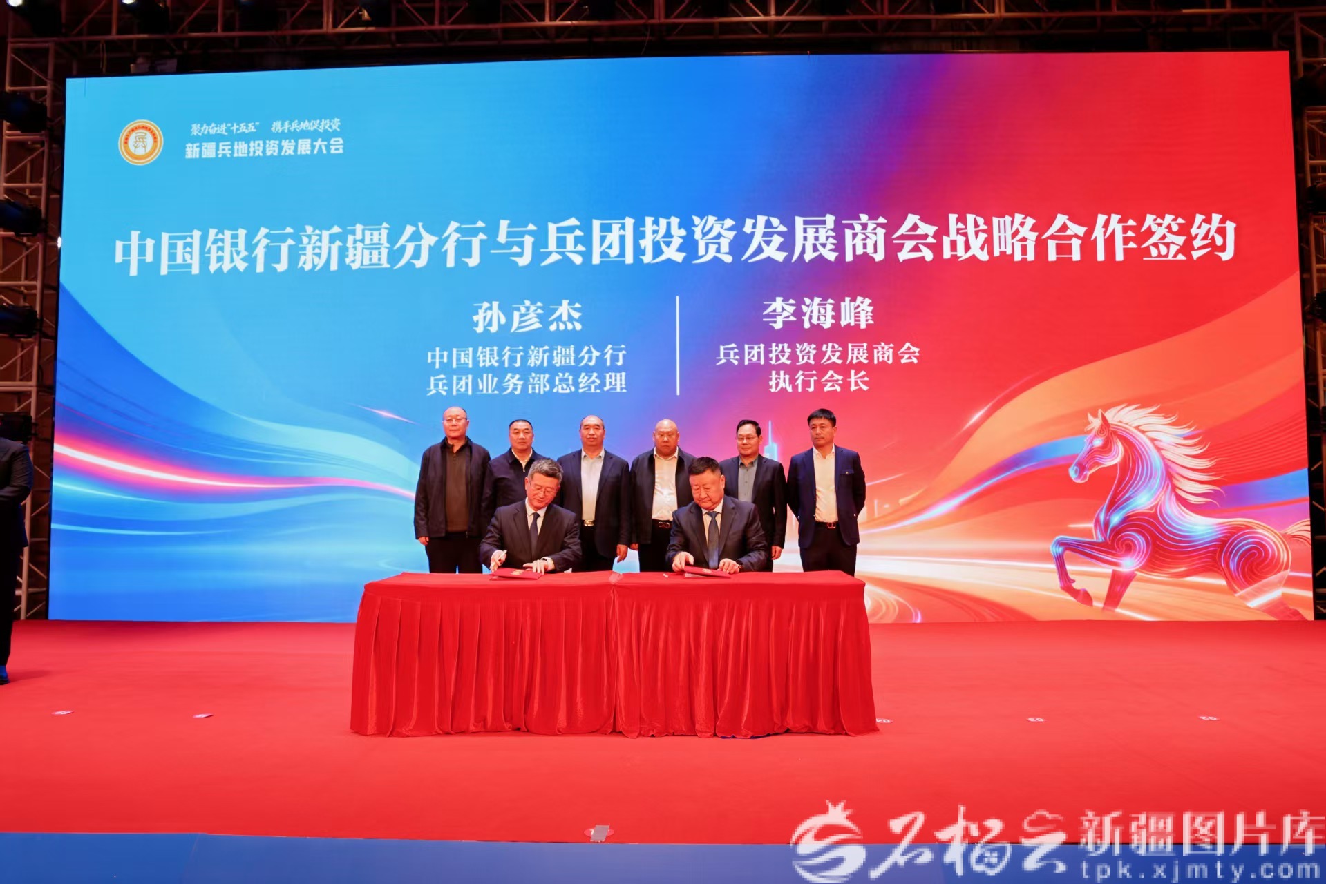 大會的簽約儀式上,兵團(tuán)投資發(fā)展商會分別與中國銀行新疆區(qū)分行、中國農(nóng)影音像出版社、兵團(tuán)第一師農(nóng)墾集團(tuán)、聯(lián)易融數(shù)字科技集團(tuán)有限公司簽訂戰(zhàn)略合作協(xié)議。