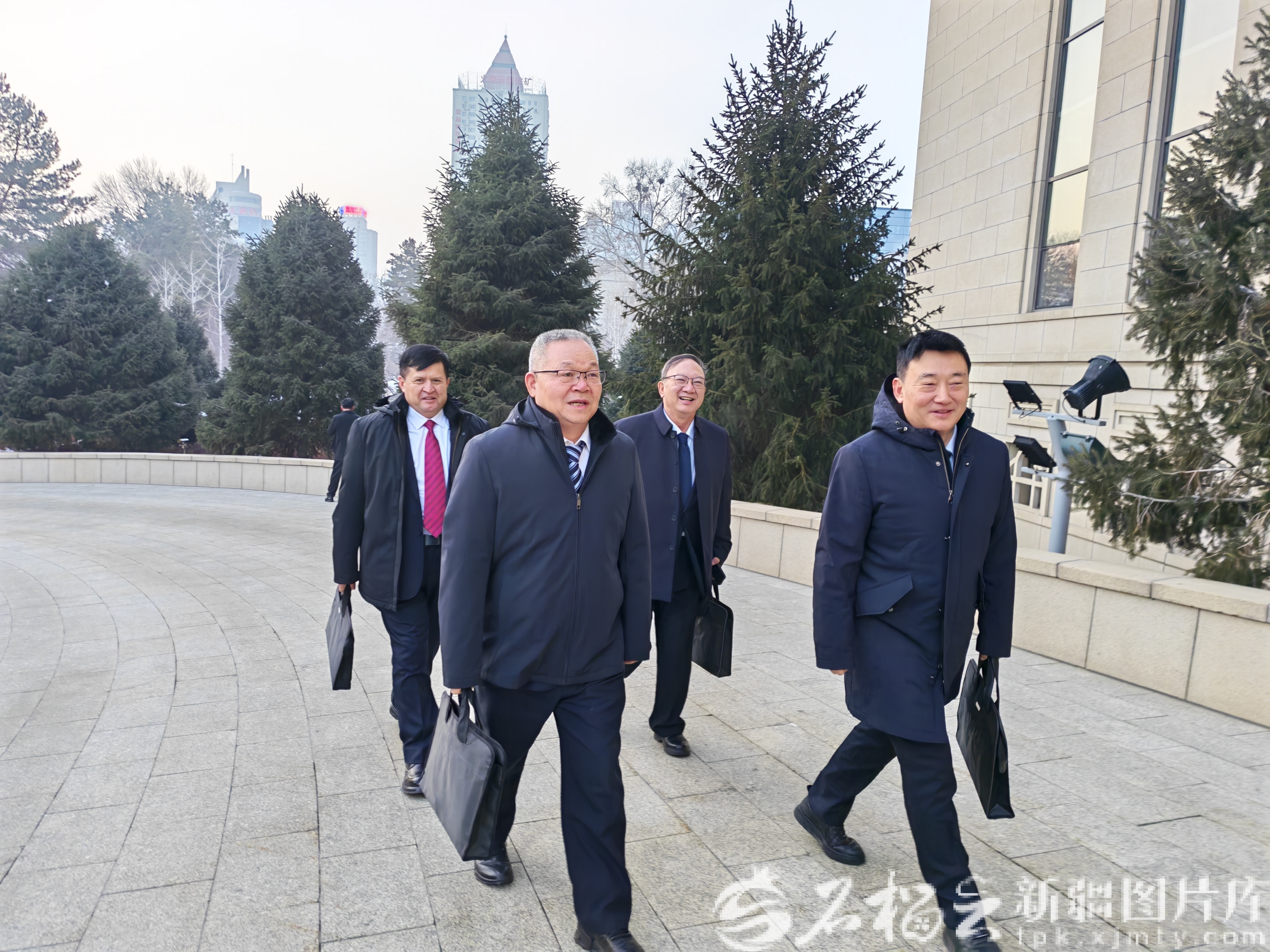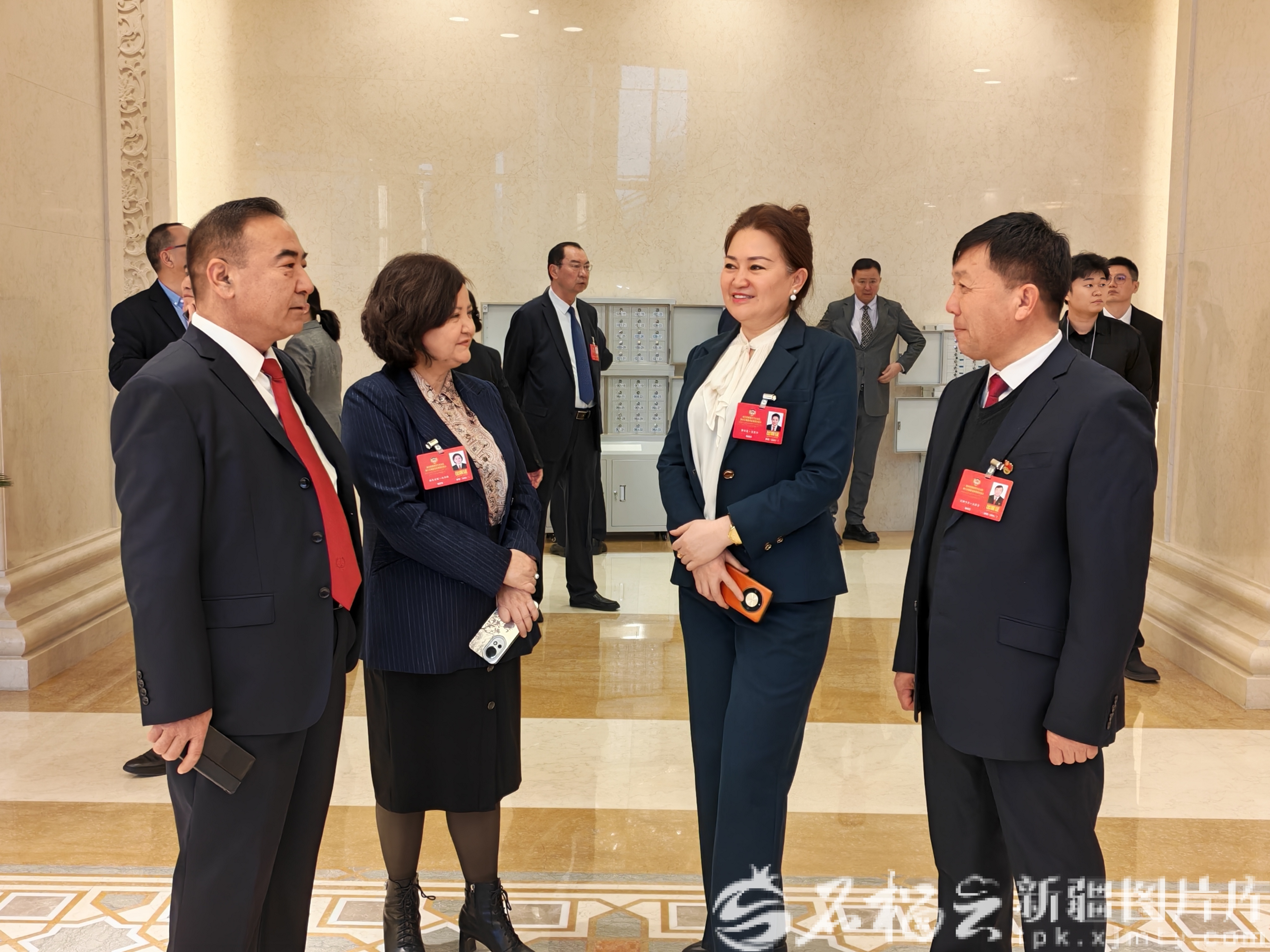 1月26日上午,出席自治區(qū)政協(xié)十三屆四次會(huì)議的政協(xié)委員在新疆人民會(huì)堂大廳交流。