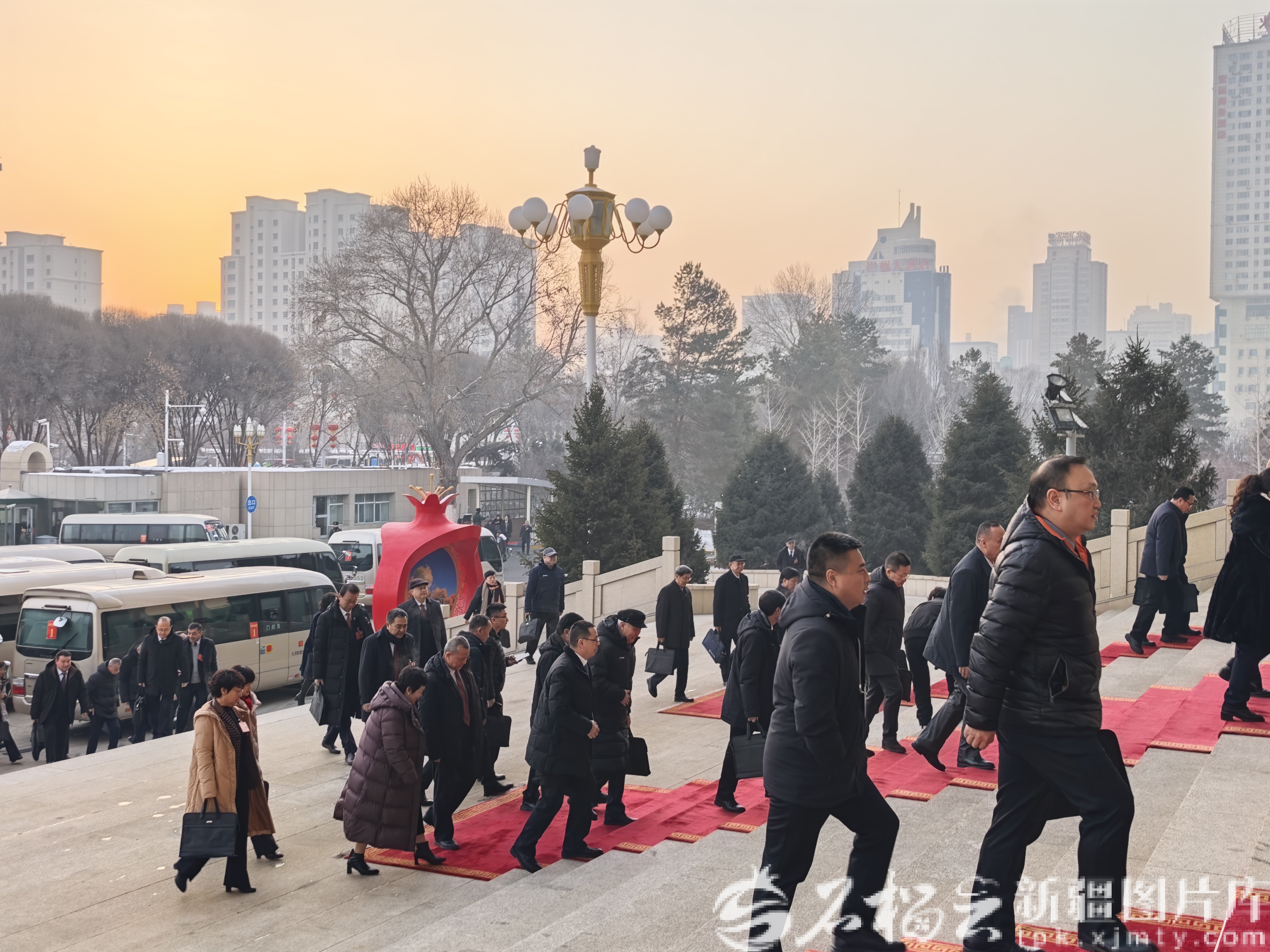1月26日上午,出席自治區(qū)政協(xié)十三屆四次會(huì)議的政協(xié)委員步入新疆人民會(huì)堂。