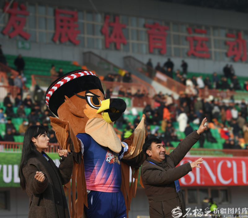 2025年12月5日,在“喀什杯”足球超級(jí)邀請(qǐng)賽現(xiàn)場,演員扮演成“帕米爾雄鷹—阿米爾”吉祥物,為球隊(duì)吶喊助威。(資料圖)