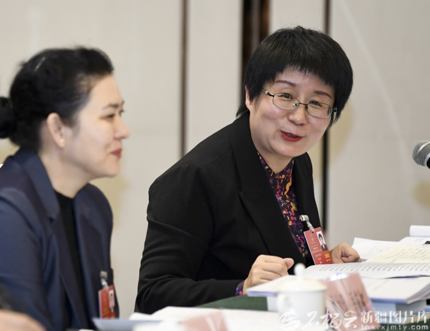 1月29日,高紅妮(右)參加烏魯木齊市代表團審議時發(fā)言。圖片由本人提供