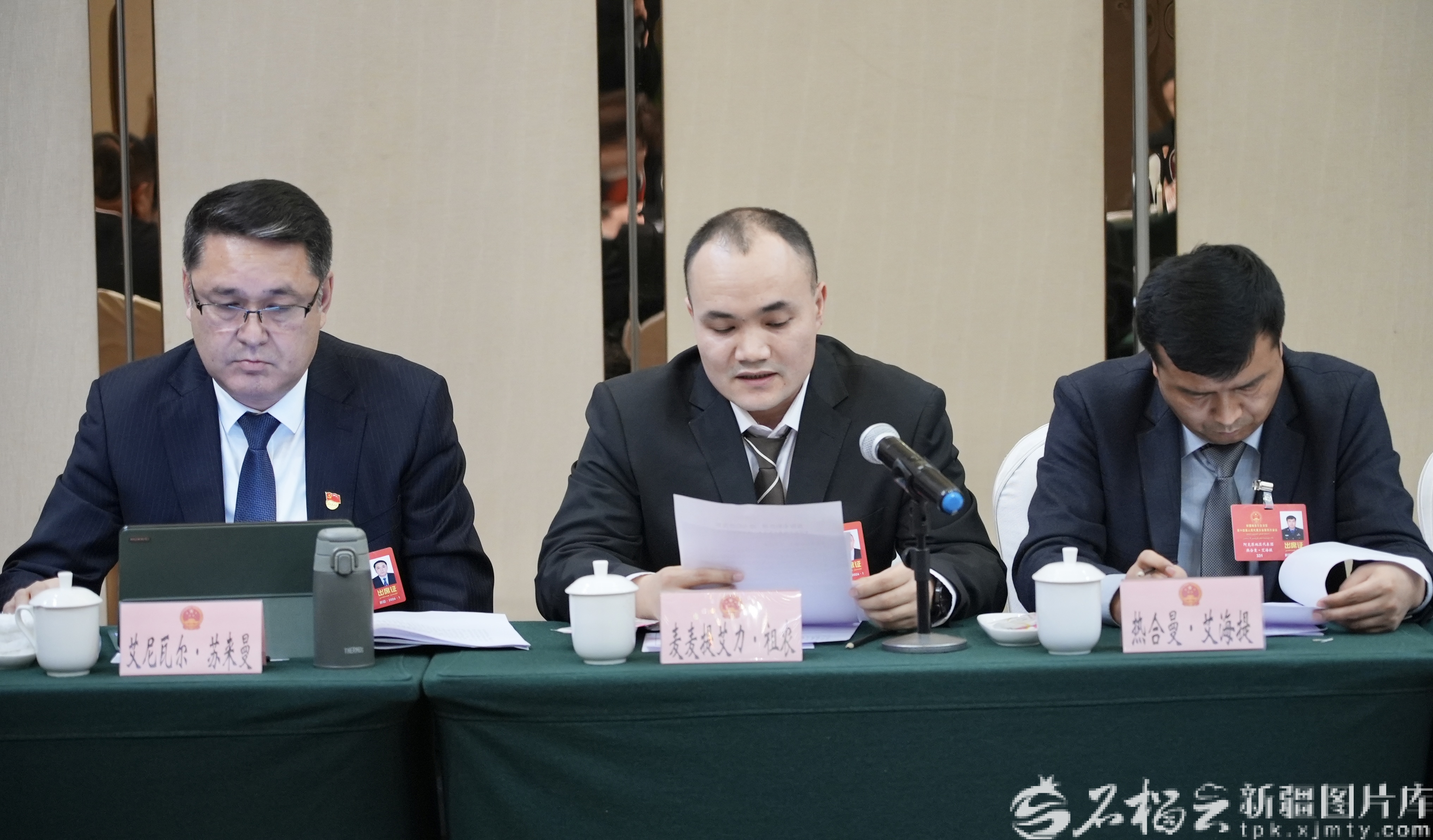 1月30日,麥麥提艾力·祖農(nóng)代表(中)在發(fā)言。胡瀟瀟攝