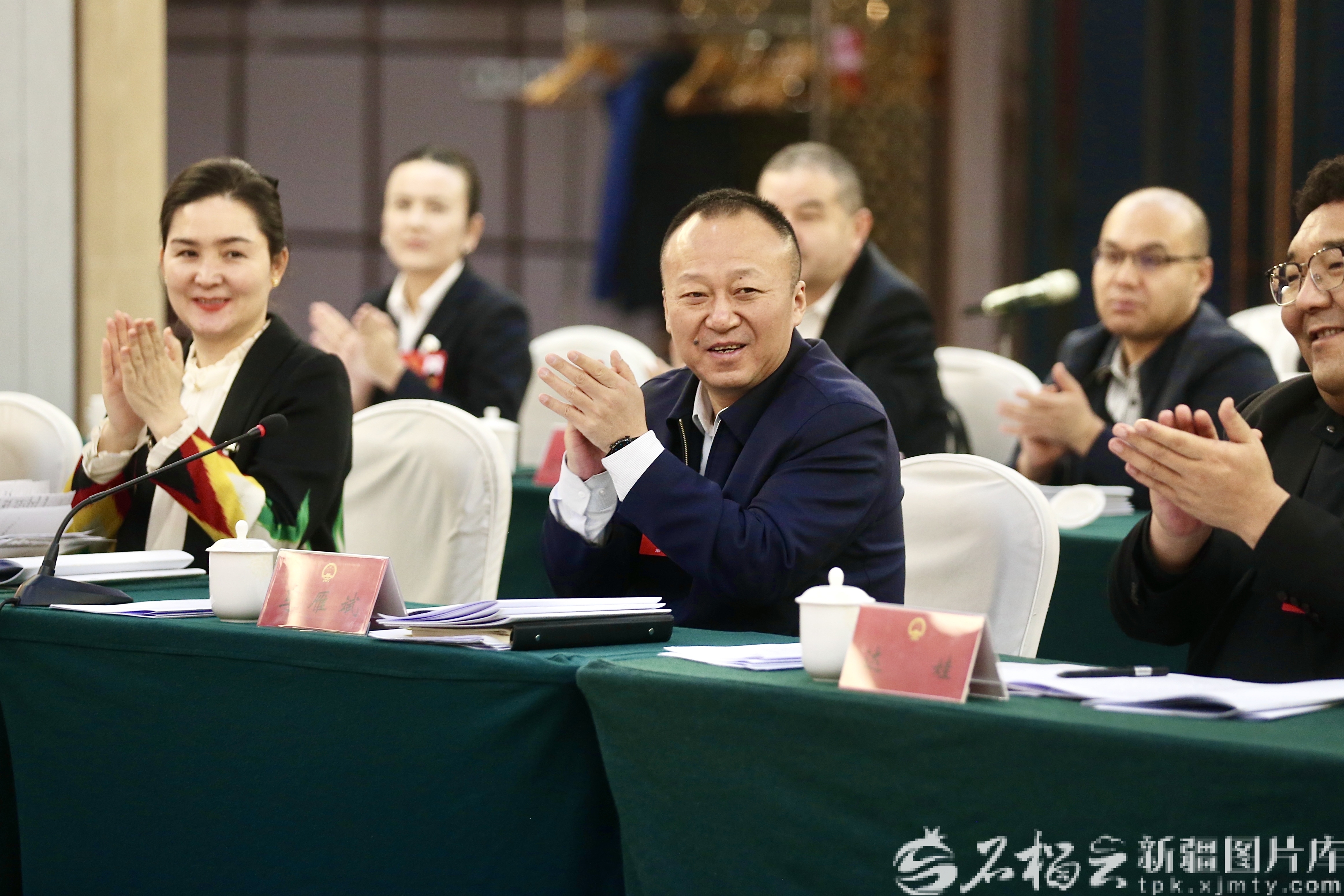 1月30日,巴音郭楞蒙古自治州代表團(tuán)審議時(shí),代表們?yōu)榫实陌l(fā)言鼓掌。天山網(wǎng)-新疆日?qǐng)?bào)記者 李瑞攝