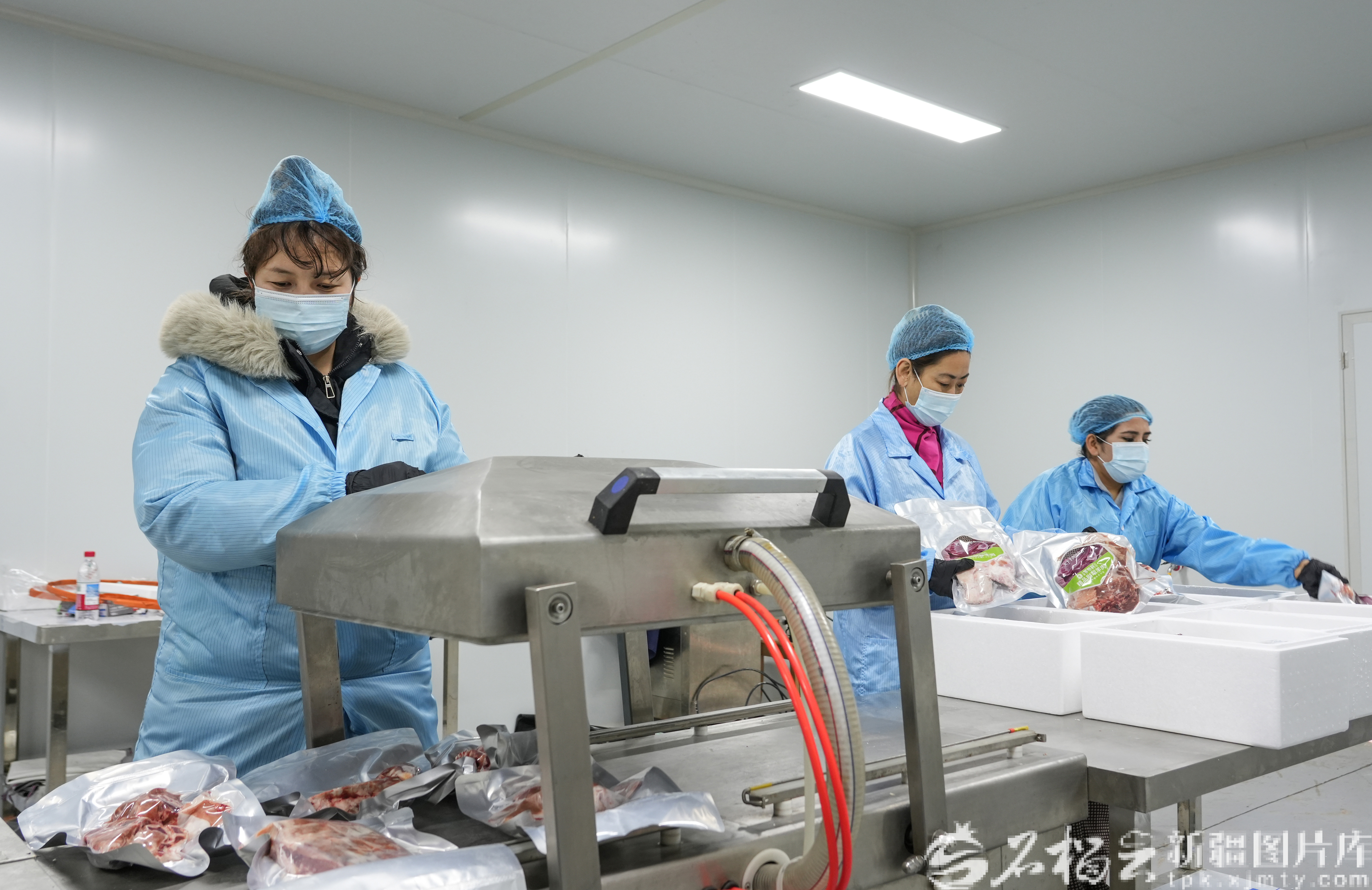 1月19日,新疆羅布村生物科技有限公司員工正在對生鮮產(chǎn)品“羅布羊”進行真空包裝、張貼快遞單,準備發(fā)貨。烏尉高速公路通車后,依托這一物流優(yōu)勢,新疆羅布村生物科技有限公司的 “羅布村” 系列特色產(chǎn)品,遠銷廣東、上海等多地。唐雪芹 攝