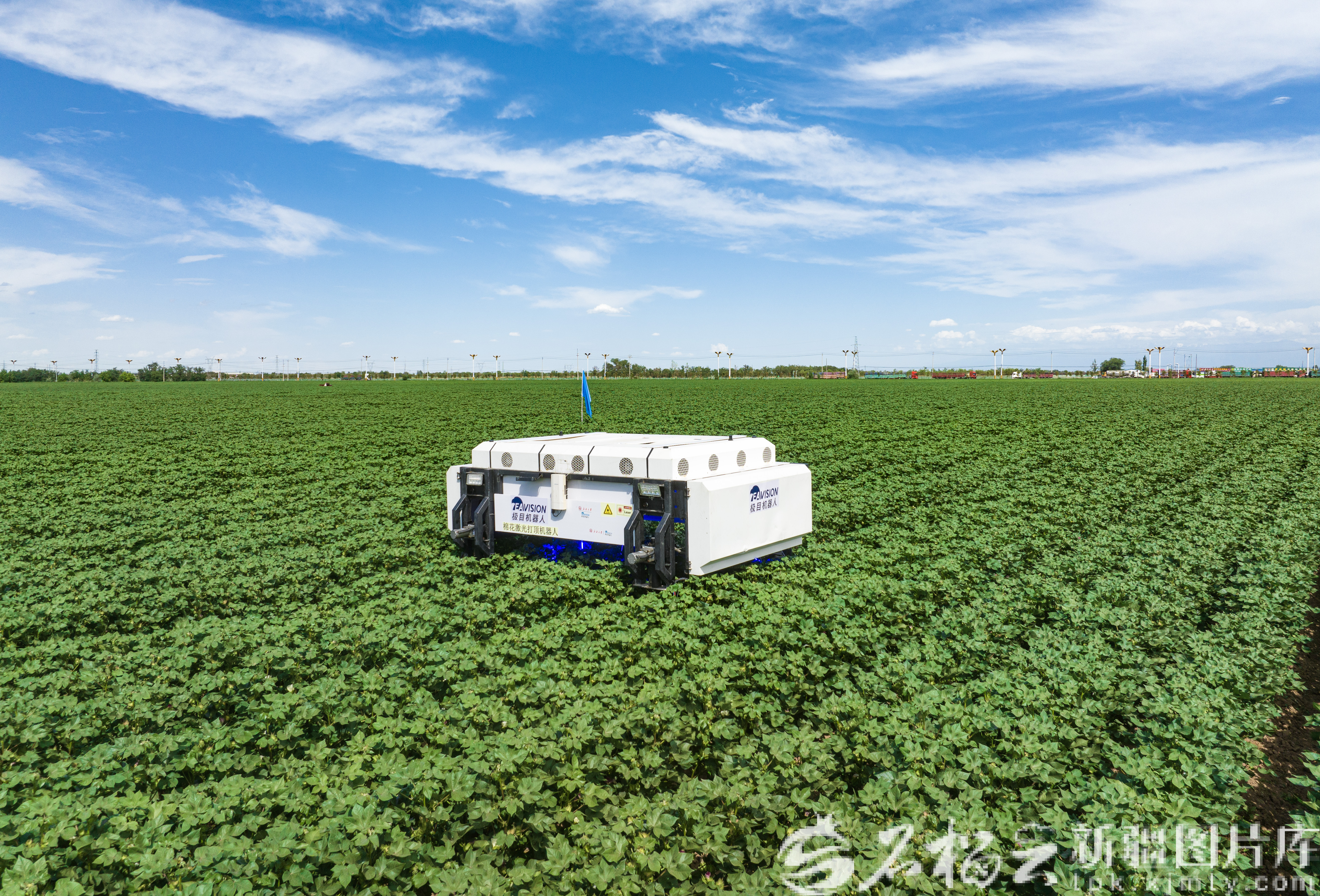 在昌吉市榆樹溝鎮(zhèn)榆樹溝村的棉田里,棉花激光打頂機(jī)器人正在作業(yè)(資料圖)。何龍攝