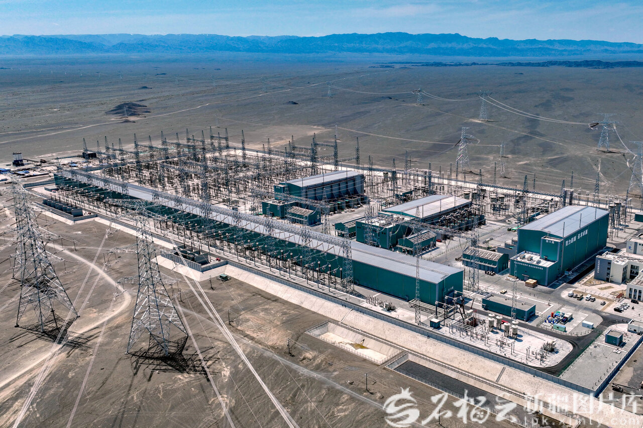 航拍哈密—重慶±800千伏特高壓直流輸電工程巴里坤換流站。天山網(wǎng)-新疆日報(bào)記者 蔡增樂攝