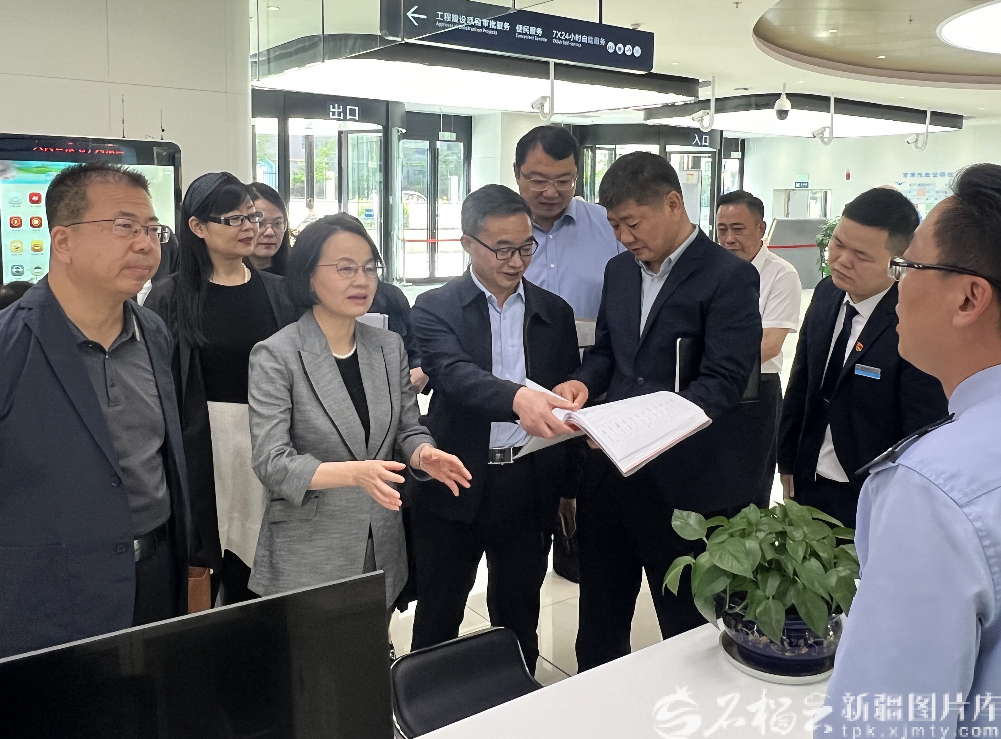 2025年5月,張慧(前左二)在烏魯木齊高新技術(shù)產(chǎn)業(yè)開發(fā)區(qū)(新市區(qū))政務(wù)服務(wù)中心體驗館走訪調(diào)研,開展民主監(jiān)督工作。圖/張慧提供