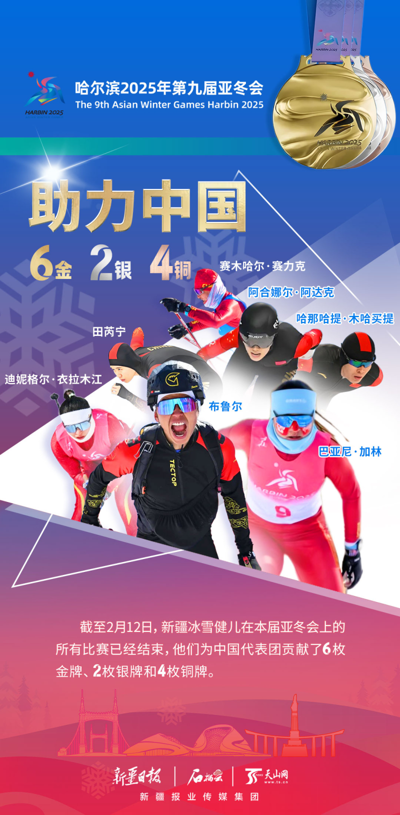 32金27銀26銅,當(dāng)?shù)诰艑脕喼薅具\動會的主火炬在哈爾濱緩緩熄滅之際,中國體育代表團交出了一份令人欣喜的成績單。其中,新疆運動員貢獻了5金2銀4銅,不僅助力中國創(chuàng)造了歷史最佳戰(zhàn)績,還實現(xiàn)了新疆在亞冬會上獎牌零的突破,書寫了新疆冰雪運動嶄新篇章。