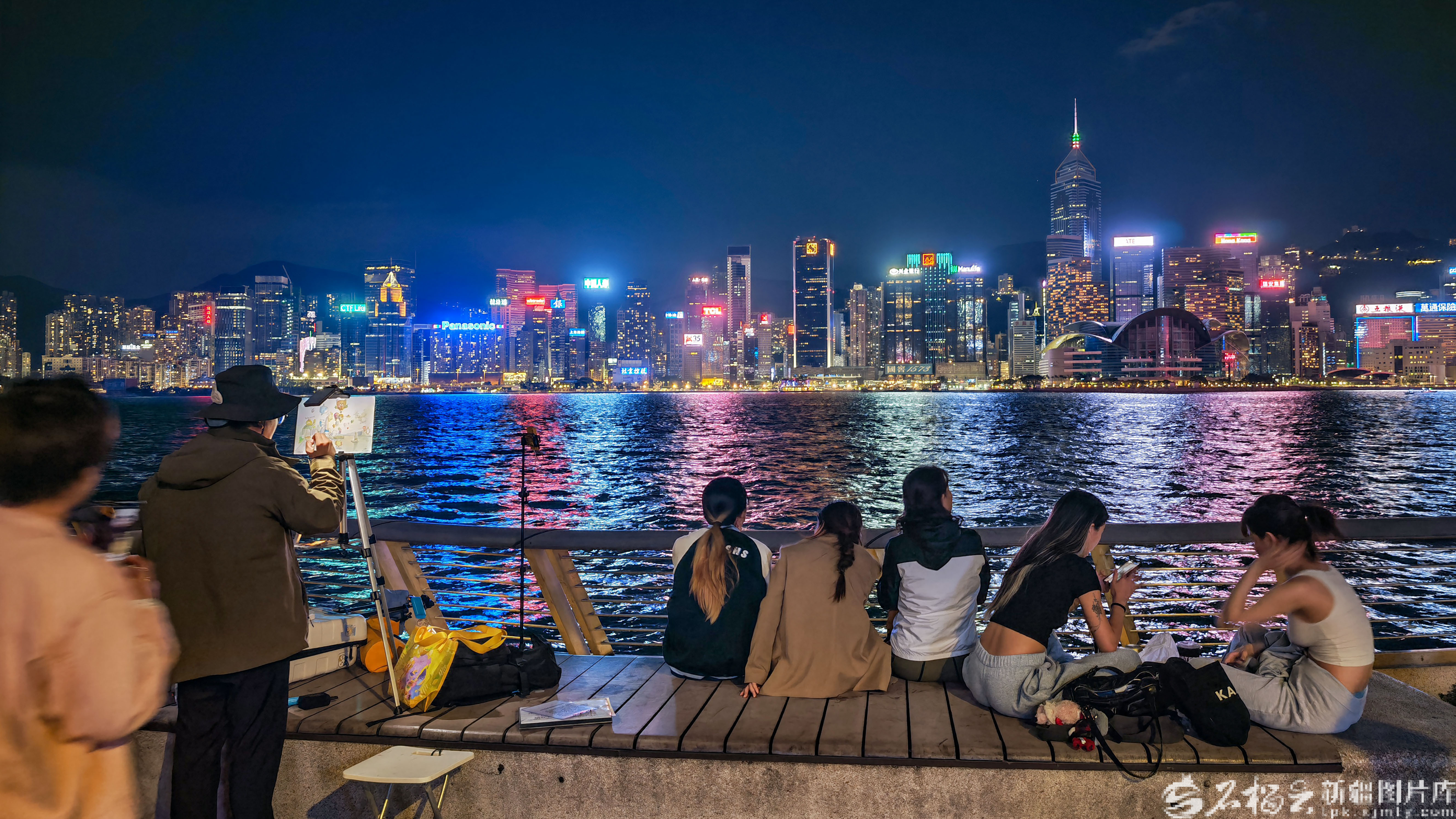 記者沿步道向北漫步,此時的步道仿佛一條城市生活長廊:三五成群的散步者輕聲交流著賽事亮點;奔跑者踏著堅定的步伐,與漫步者擦肩而過;憑欄而立的觀景者凝望海面,目光追隨著游船劃過水面留下的粼粼波光。不同的人群在此交匯,共同沉浸于香港之夜特有的舒緩韻律中。