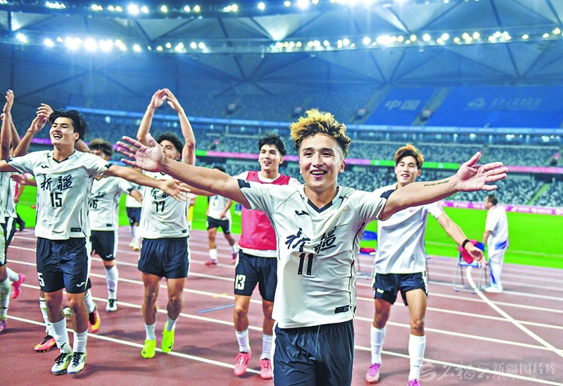 11月3日,第十五屆全國(guó)運(yùn)動(dòng)會(huì)足球U20男子小組賽第二輪,新疆隊(duì)以1∶0戰(zhàn)勝浙江隊(duì)后,球員慶祝勝利。