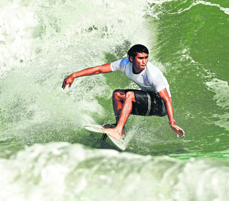 11月14日,第十五屆全國(guó)運(yùn)動(dòng)會(huì)沖浪男子短板比賽,新疆隊(duì)選手黃云翁在比賽中。
