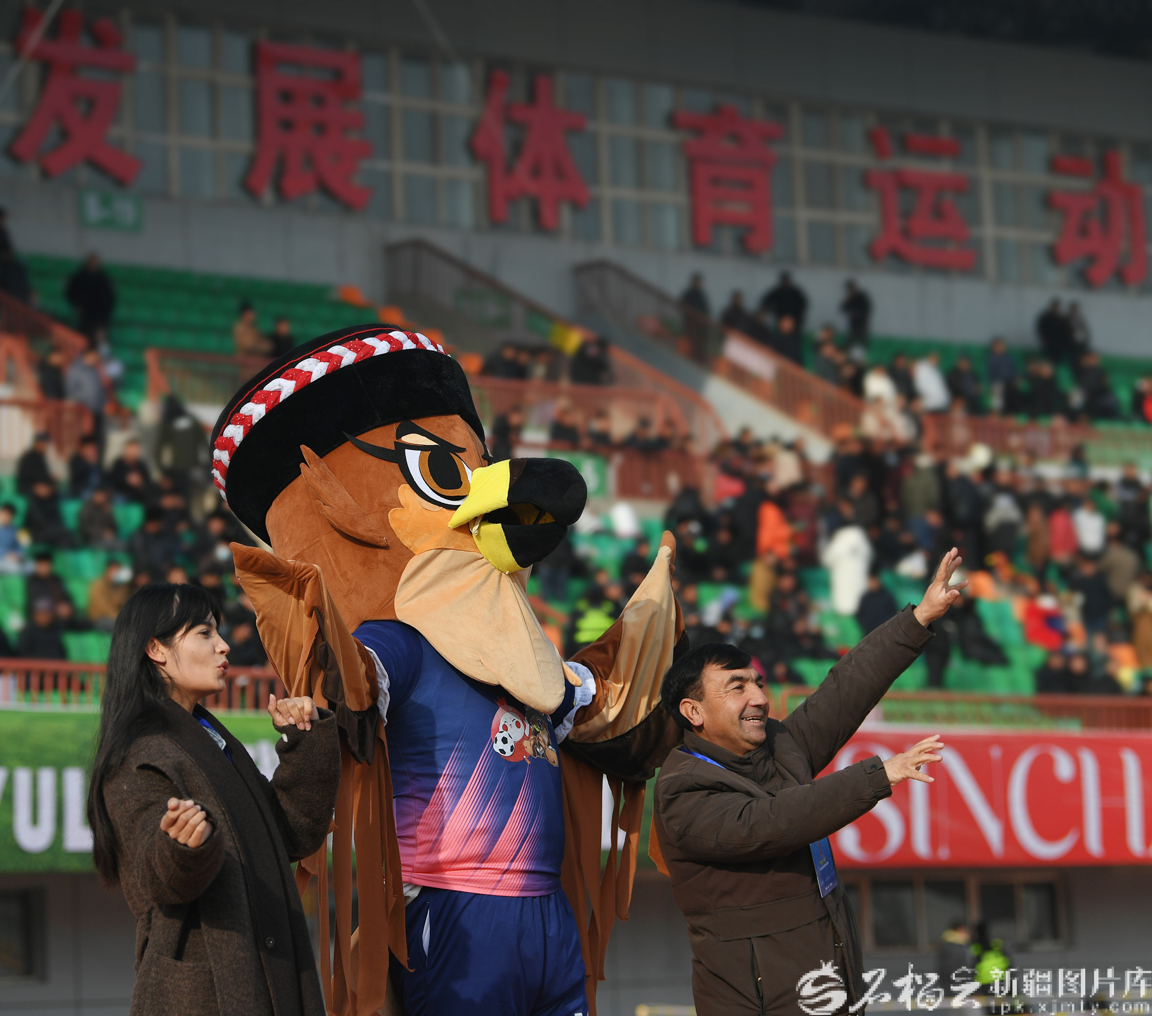 12月5日,在“喀什杯”足球超級邀請賽現(xiàn)場,演員扮演成“帕米爾雄鷹—阿米爾”吉祥物,為球隊吶喊助威。