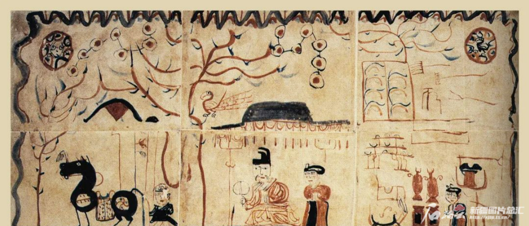展覽即將展出的《墓主人生活圖》紙畫。圖片由吐魯番市文物局提供