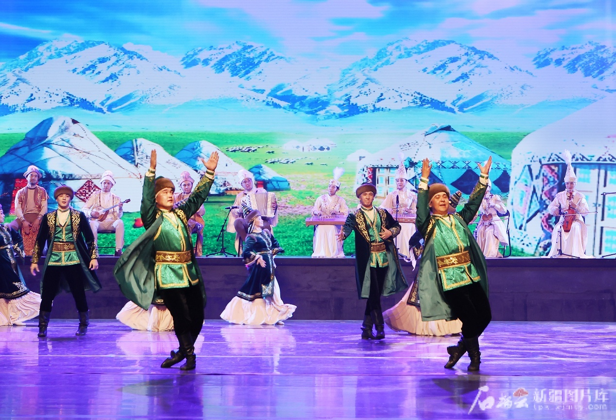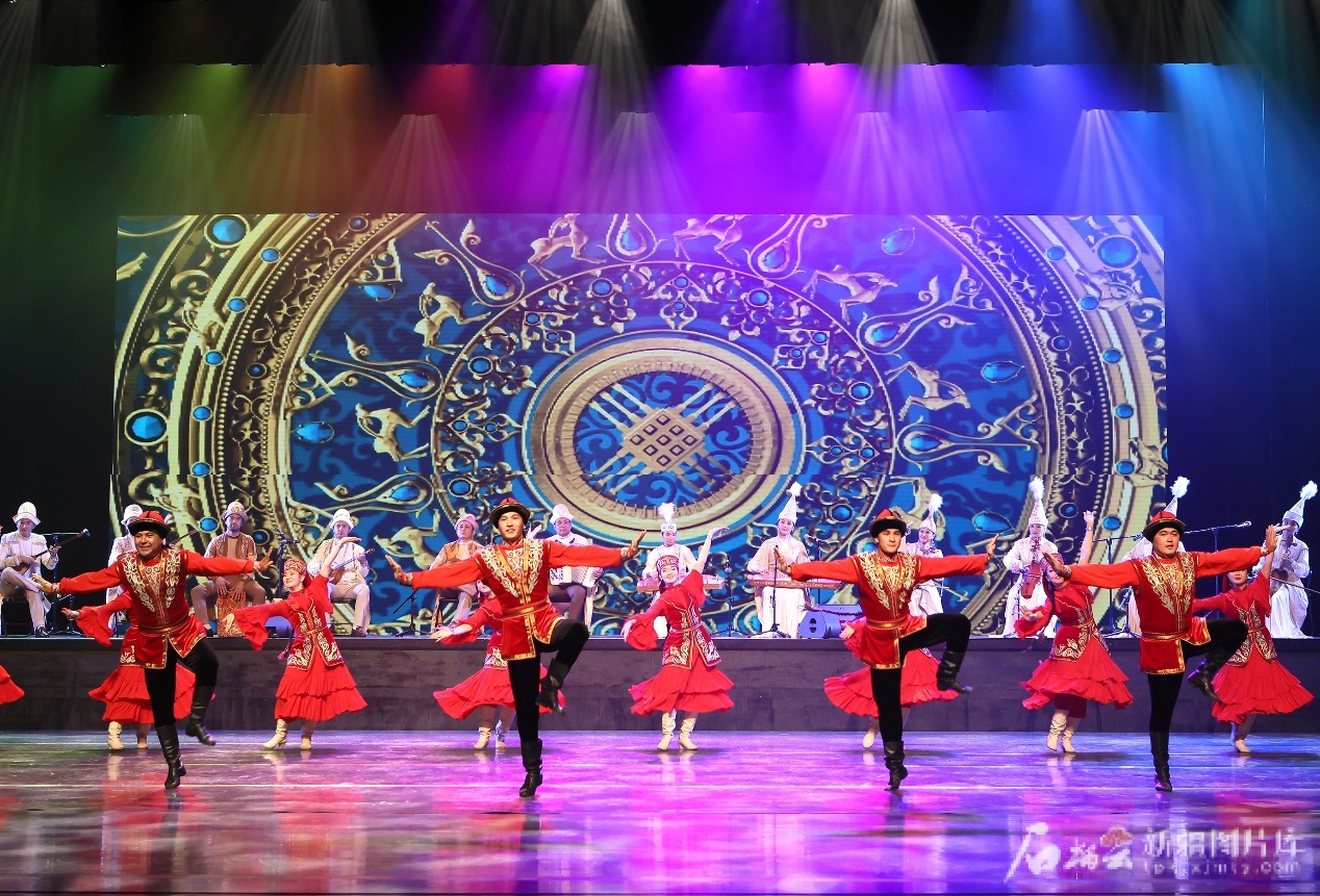 哈薩克斯坦國家闊爾庫特民族歌舞團與“納茲”國家舞蹈劇院藝術家表演的舞蹈《艾樂黑薩》。 劉成剛 攝