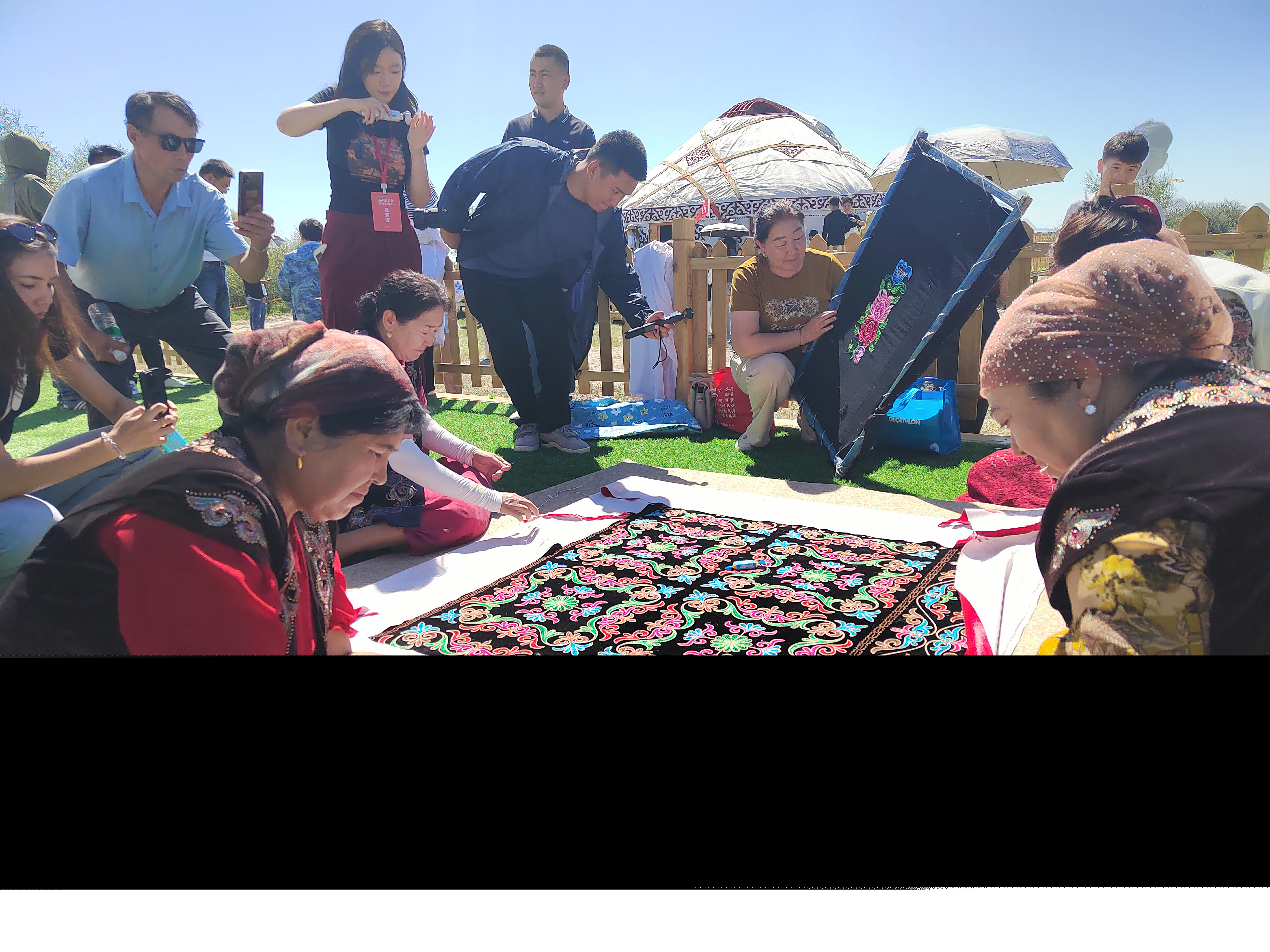 7月25日,采訪團一行在彩虹布拉克景區(qū)拍攝傳統(tǒng)刺繡展示。