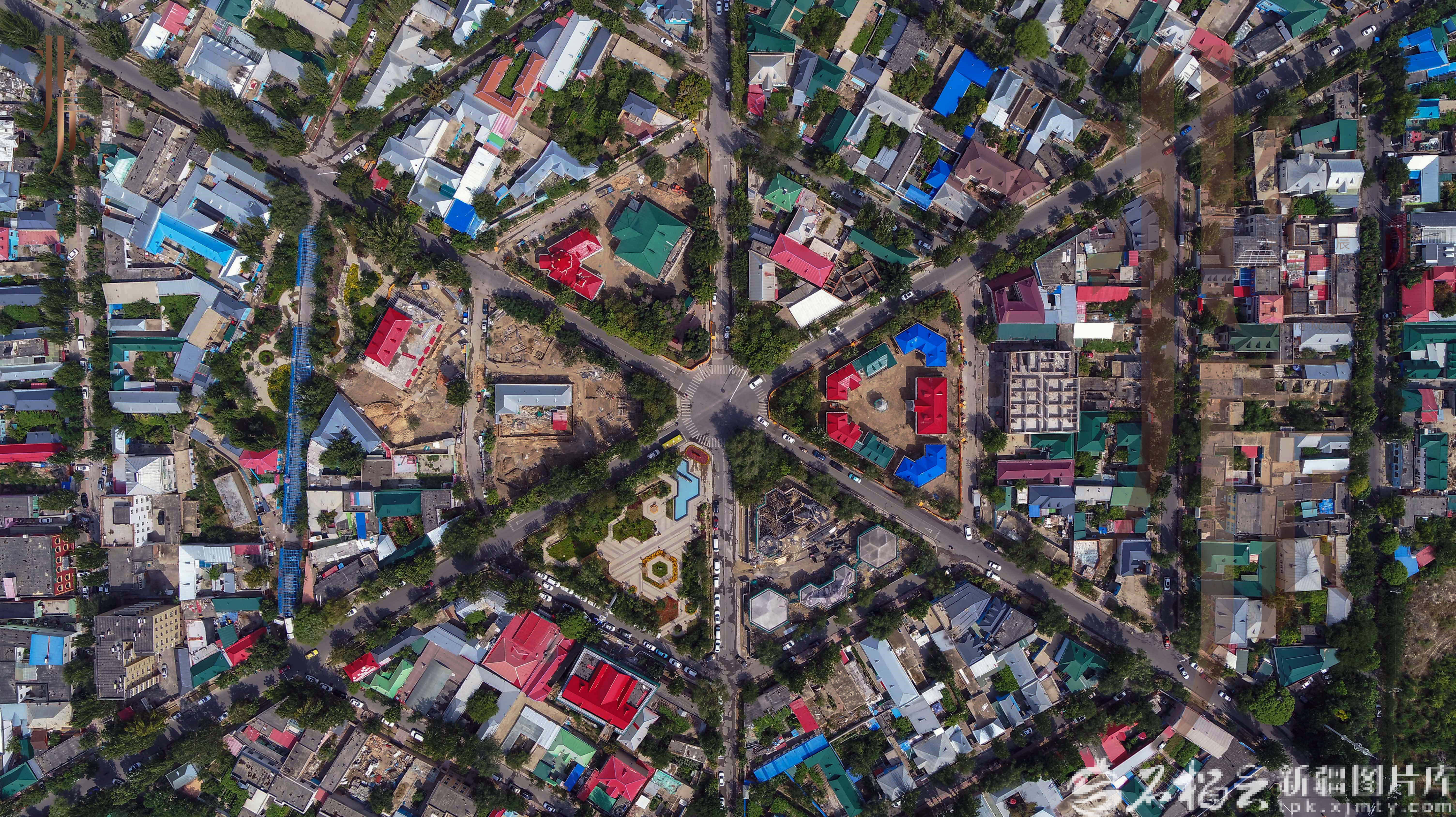 俯瞰伊寧市六星街。(9月8日無(wú)人機(jī)攝)