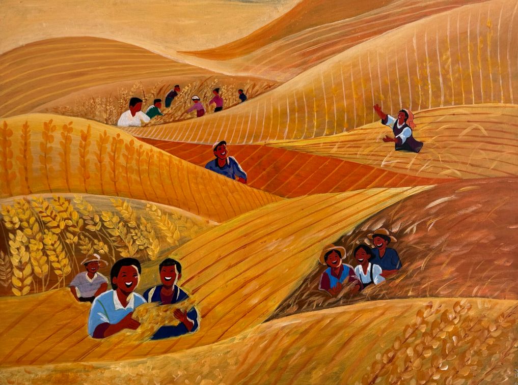 讓我們一同走進(jìn)這些色彩濃烈、質(zhì)樸鮮活的農(nóng)民畫作。每一筆都浸潤著創(chuàng)作者對鄉(xiāng)土生活的深情,每一幅都定格了新疆農(nóng)牧民的喜悅與奮斗足跡。這些作品以最生動的視覺語言,呈現(xiàn)了鄉(xiāng)村振興戰(zhàn)略下新疆大地的豐碩成果與蓬勃生機(jī)。