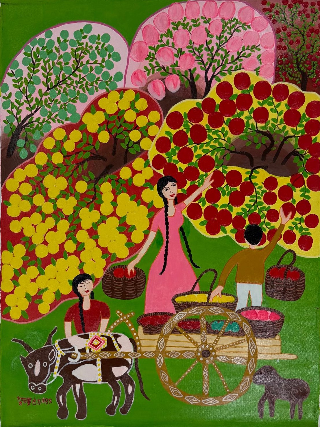 讓我們一同走進這些色彩濃烈、質(zhì)樸鮮活的農(nóng)民畫作。每一筆都浸潤著創(chuàng)作者對鄉(xiāng)土生活的深情,每一幅都定格了新疆農(nóng)牧民的喜悅與奮斗足跡。這些作品以最生動的視覺語言,呈現(xiàn)了鄉(xiāng)村振興戰(zhàn)略下新疆大地的豐碩成果與蓬勃生機。