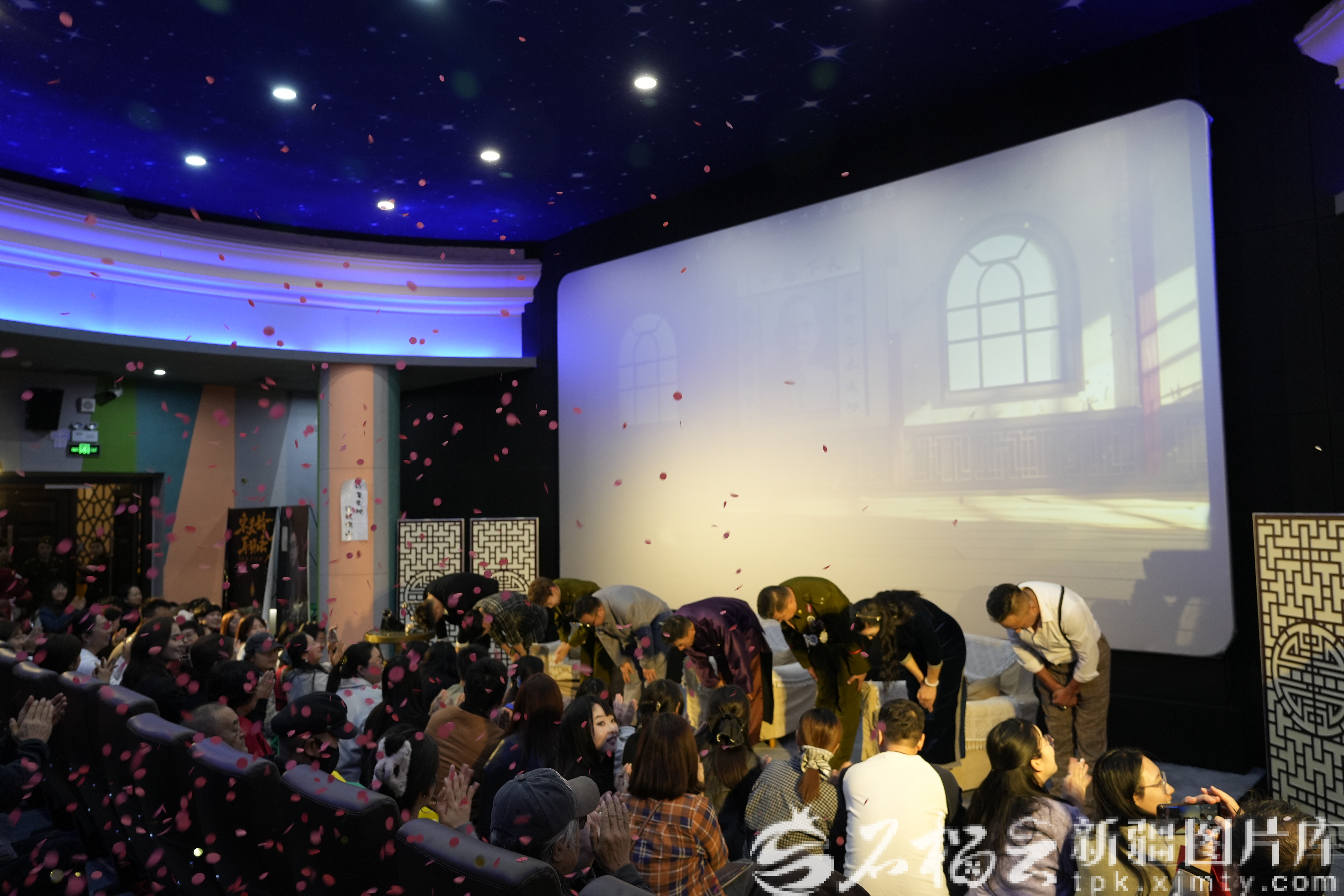 沉浸式懸疑話劇《宋美齡耳環(huán)丟了》封箱演出結(jié)束,演員們致謝觀眾。 韓雪 攝