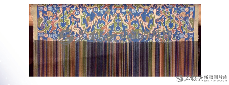 采用五重平紋經(jīng)錦技術(shù),通過(guò)五層經(jīng)線與一層緯線的精密交織,實(shí)現(xiàn)了文字與圖案的同步呈現(xiàn),經(jīng)密達(dá)220根/厘米、緯密48根/厘米,文字和圖案均為織出。其技術(shù)復(fù)雜度、精細(xì)度與創(chuàng)新價(jià)值,不僅代表了當(dāng)時(shí)世界紡織業(yè)的頂尖水平,更成為中原與西域技術(shù)交流、文明互鑒的重要見(jiàn)證。