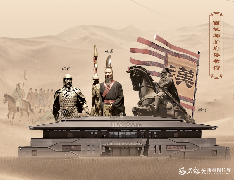 博物館位于輪臺(tái)縣,于今年5月18日正式開(kāi)館。博物館以“懸旌萬(wàn)里”為主題,設(shè)“都護(hù)建府”“令行西域”等5個(gè)常設(shè)展區(qū),集中陳列463件(套)文物,展示了輪臺(tái)縣境內(nèi)卓爾庫(kù)特古城遺址、奎玉克協(xié)海爾古城遺址及周邊文化遺址近年來(lái)的重要考古成果,以及出土于新疆各地反映歷代中央政權(quán)有效治理西域的重要文物。圖中人物分別為首任西域都護(hù)鄭吉、鑿空西域的博望侯張騫、東漢時(shí)期兩度出使西域的班超。