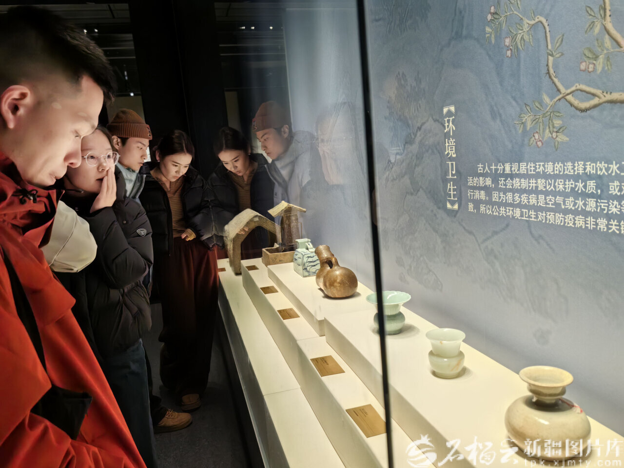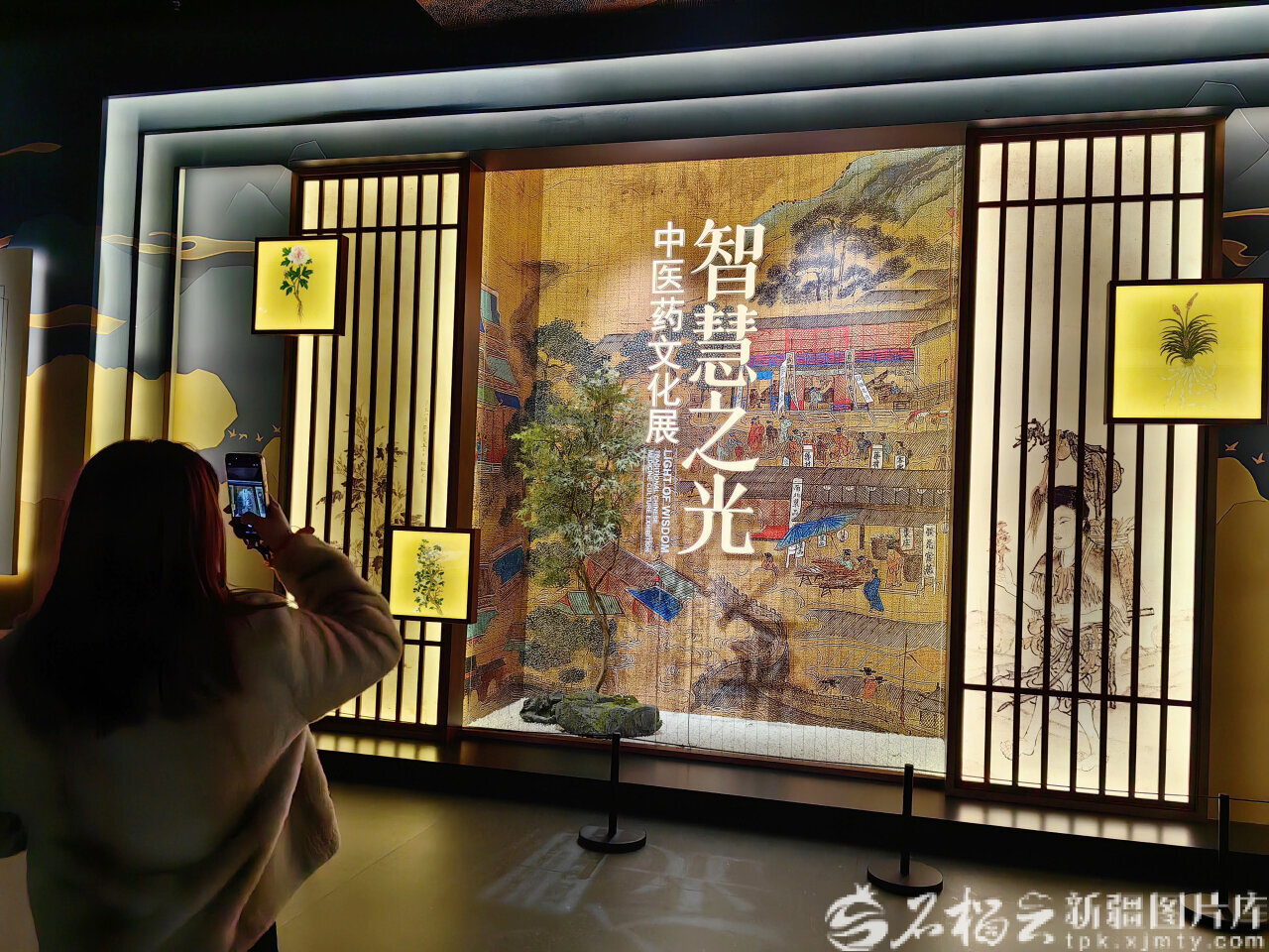 11月8日,在新疆博物館,市民在“智慧之光——中醫(yī)藥文化展”前拍照打卡。