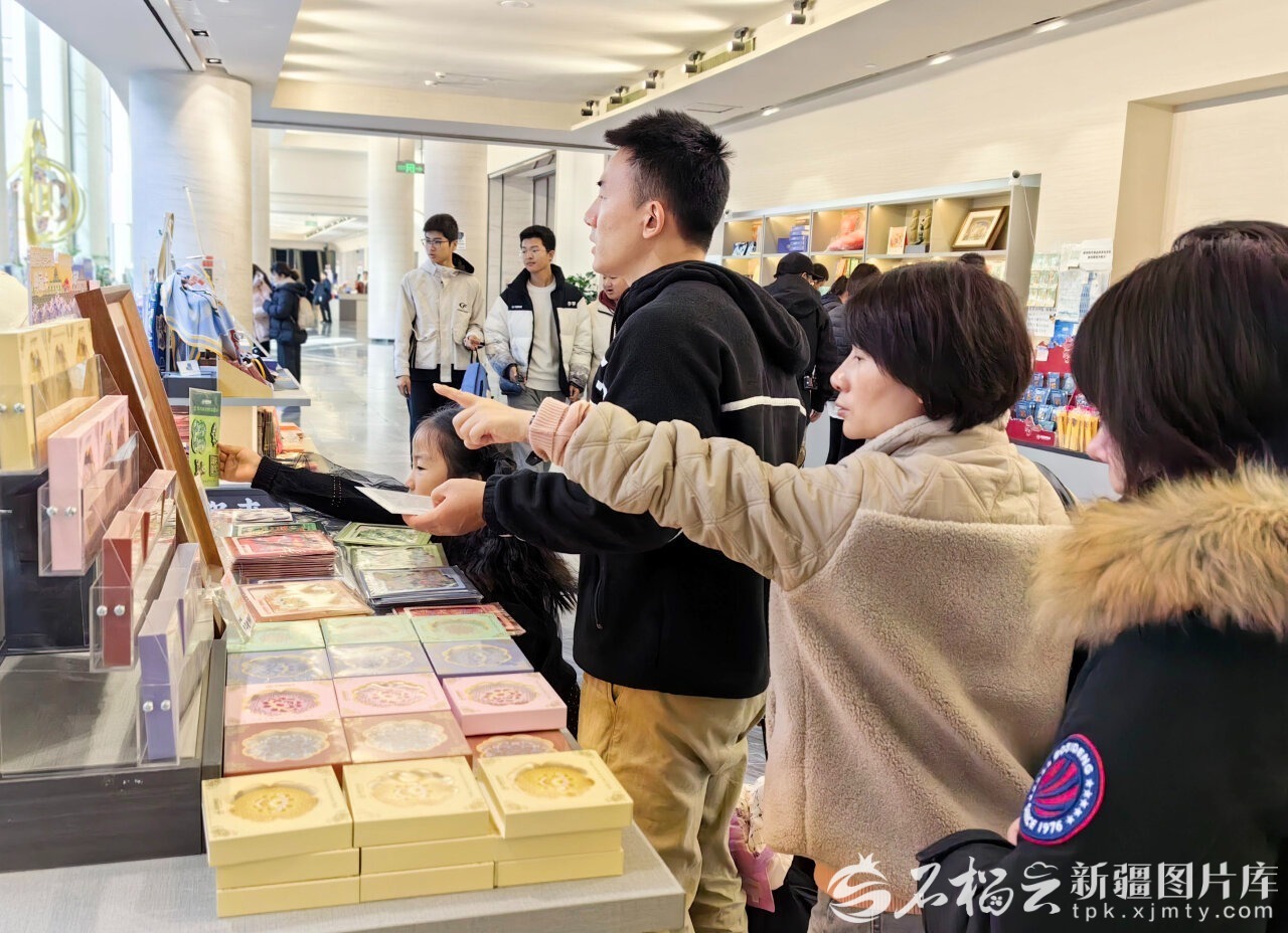 11月8日,在新疆博物館,游客在選購各種文創(chuàng)產品。
