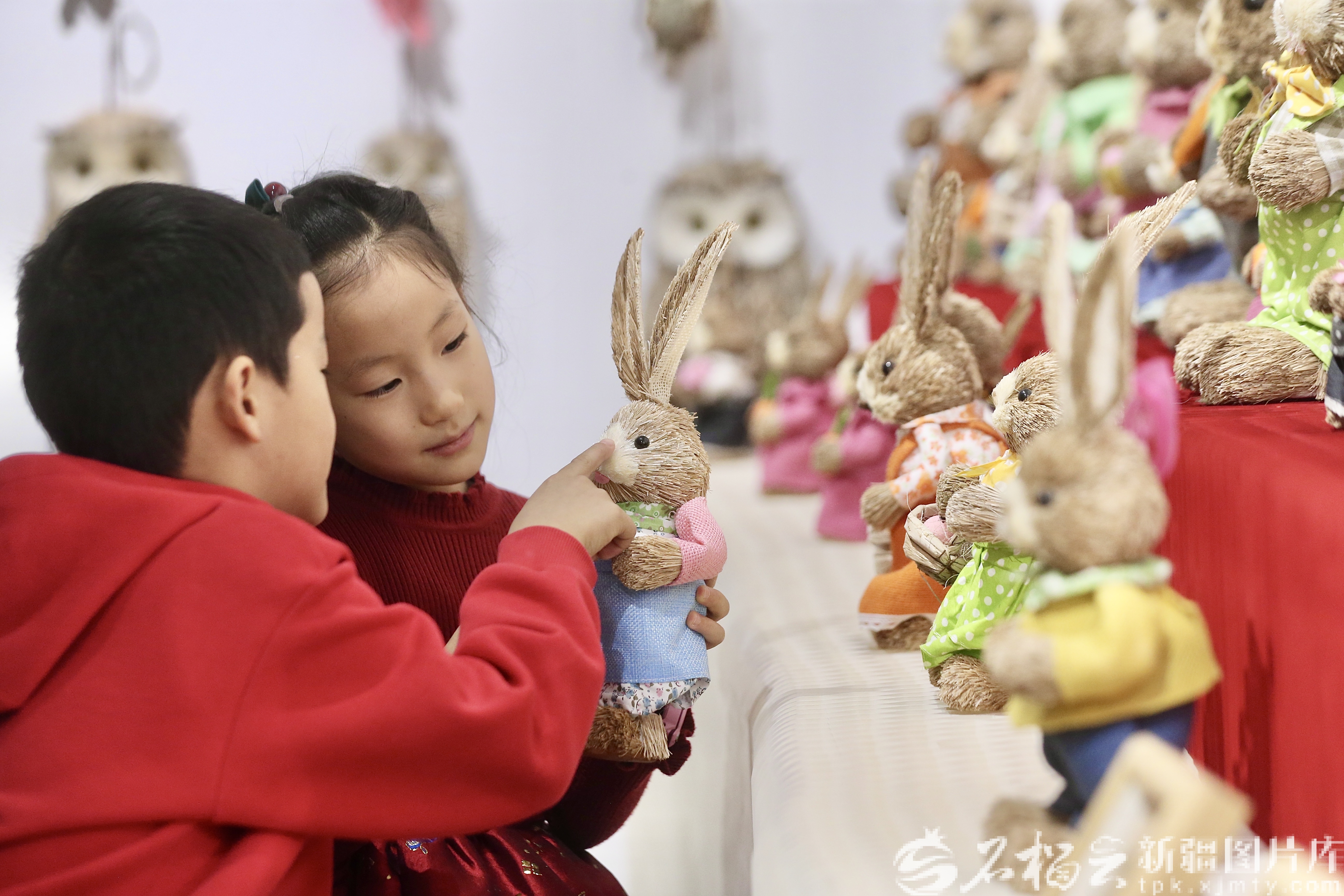 11月28日,小朋友在欣賞毛線鉤織文創(chuàng)產品。