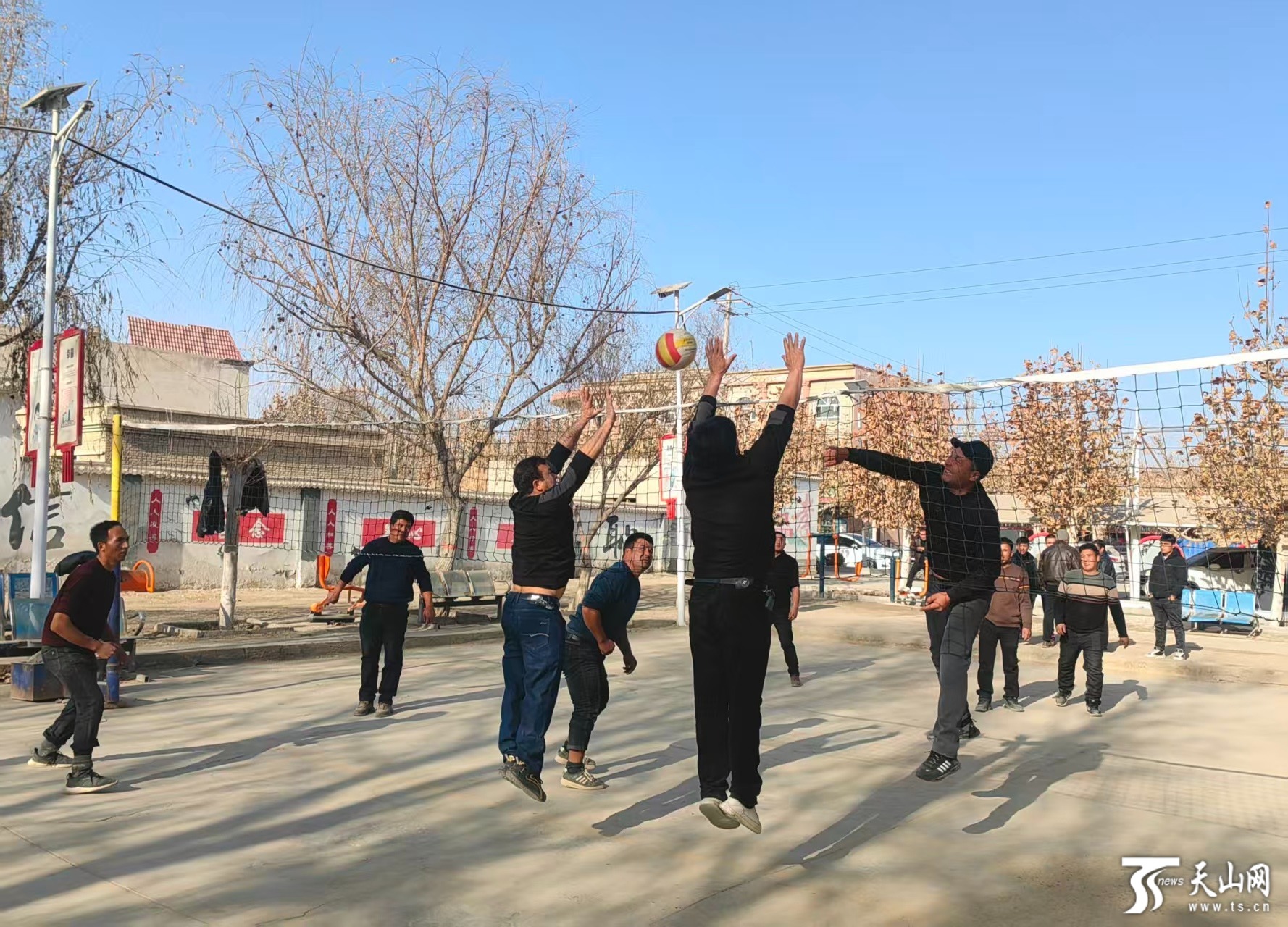 12月16日,在莎車縣依蓋爾其鎮(zhèn)公共文化服務(wù)中心前的一片空地上,村民們正在進(jìn)行激烈的排球比賽。發(fā)球、傳球、墊球、扣球、攔網(wǎng)……一輪進(jìn)攻一氣呵成、干凈利索。