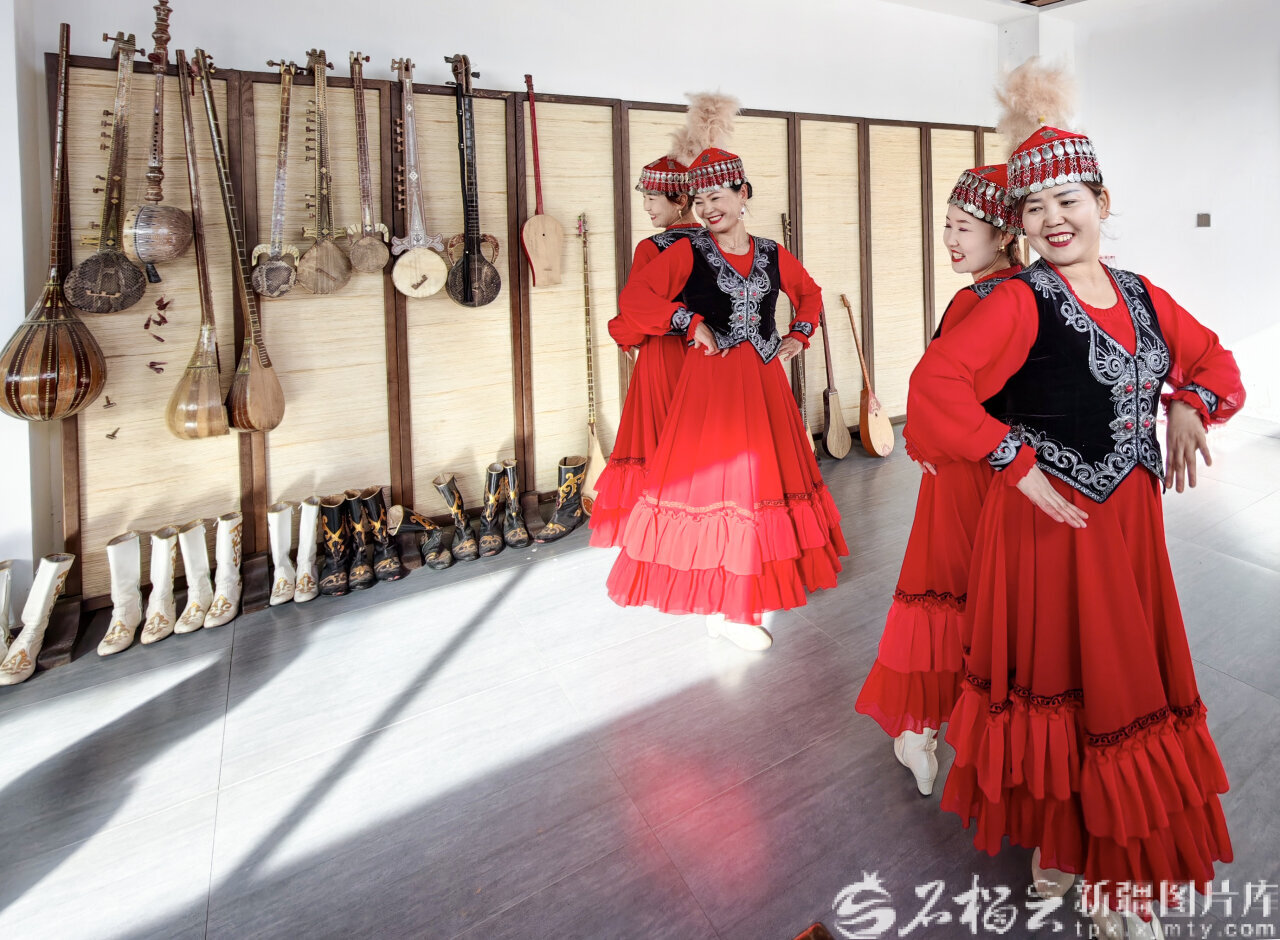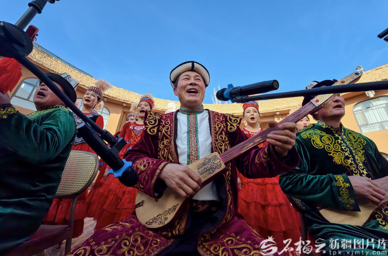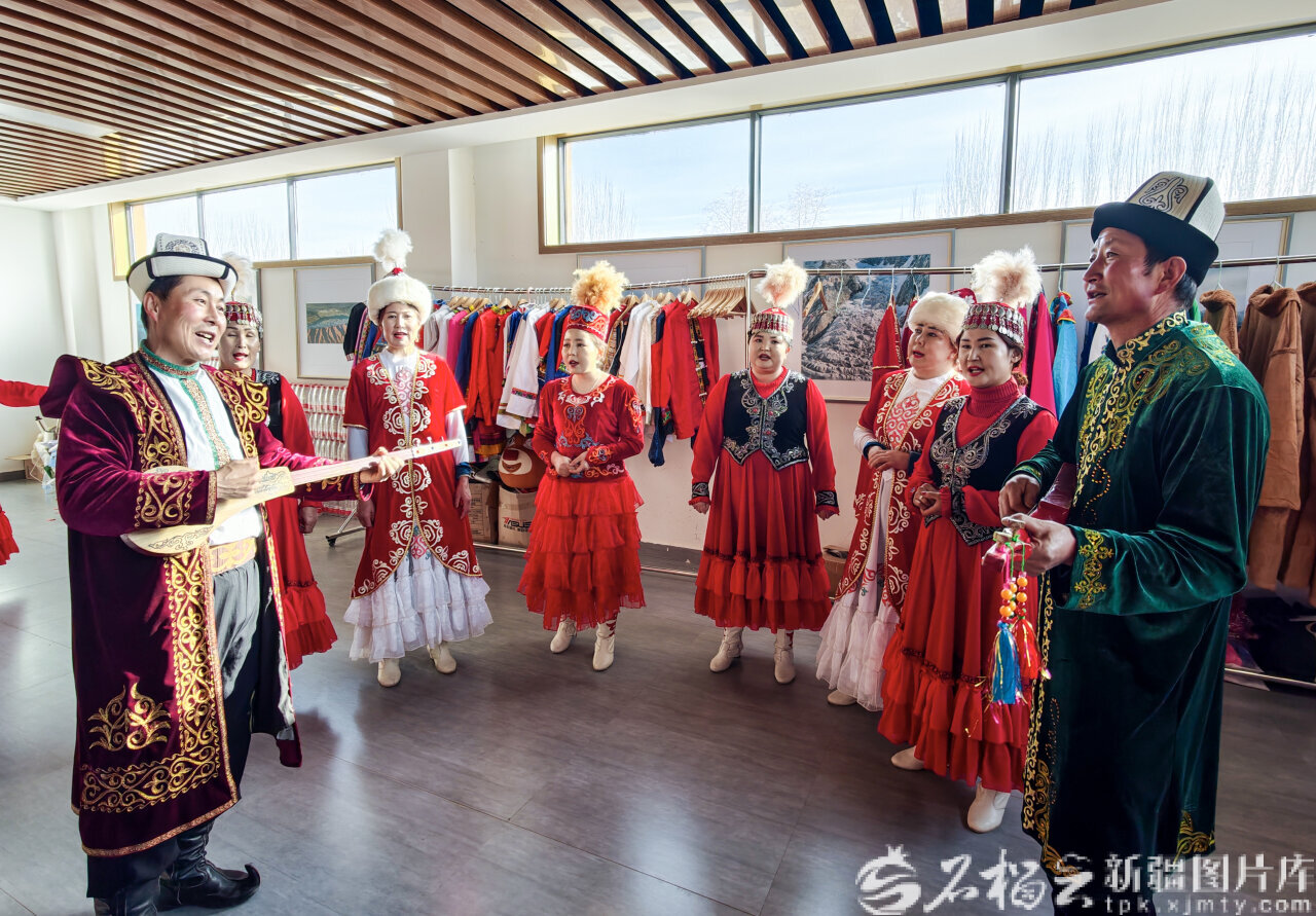 1月15日,溫宿縣博孜墩柯爾克孜族鄉(xiāng)阿克布拉克村游客服務(wù)中心,民間藝人在排練節(jié)目。