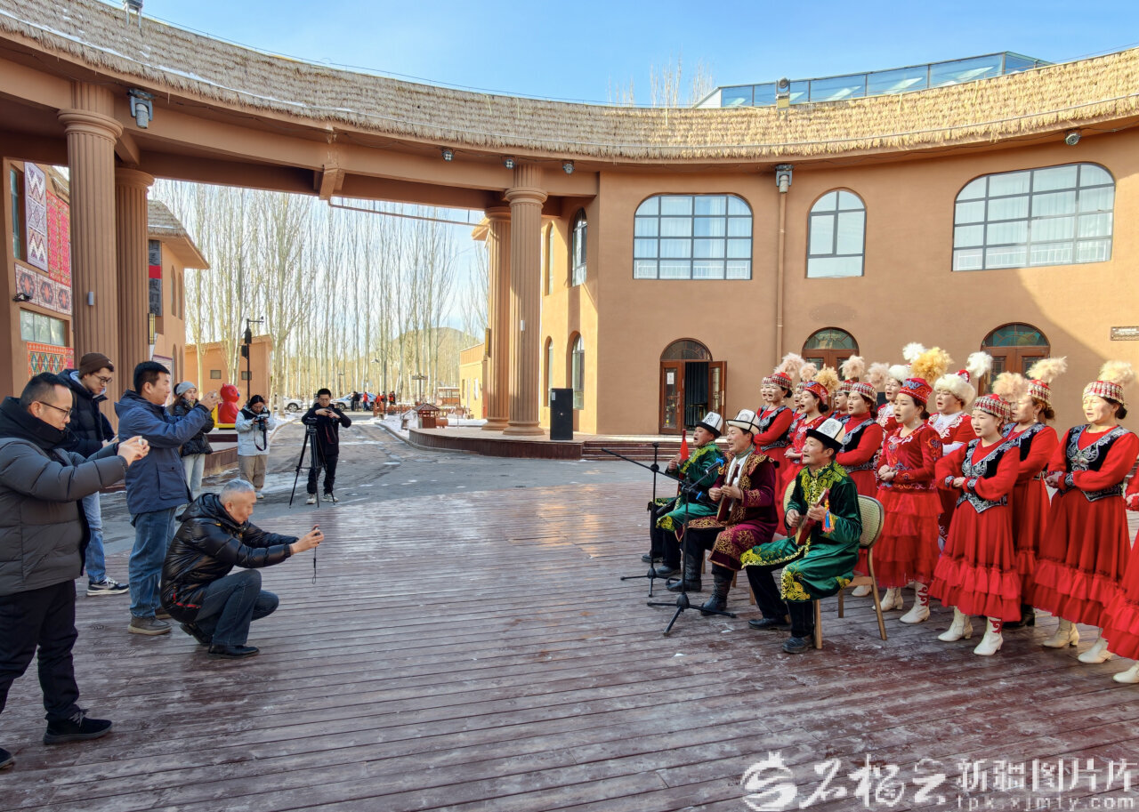 1月15日,在阿克蘇地區(qū)溫宿縣博孜墩柯爾克孜族鄉(xiāng)阿克布拉克村游客服務(wù)中心,民間藝人在排練節(jié)目。