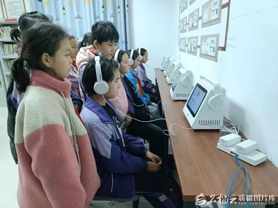 庫車市牙哈鎮(zhèn)晨光村的孩子們在聽書。鄧勇攝