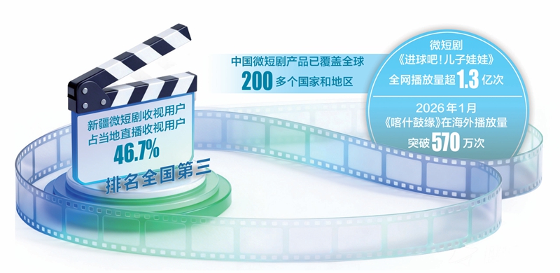 2025年11月,足球題材微短劇《進(jìn)球吧!兒子娃娃》在海外播放量超200萬次;2026年1月,音樂題材微短劇《喀什鼓緣》在臉書、TikTok播放量突破570萬次。微短劇讓中國(guó)新疆故事在全球舞臺(tái)上綻放光彩。