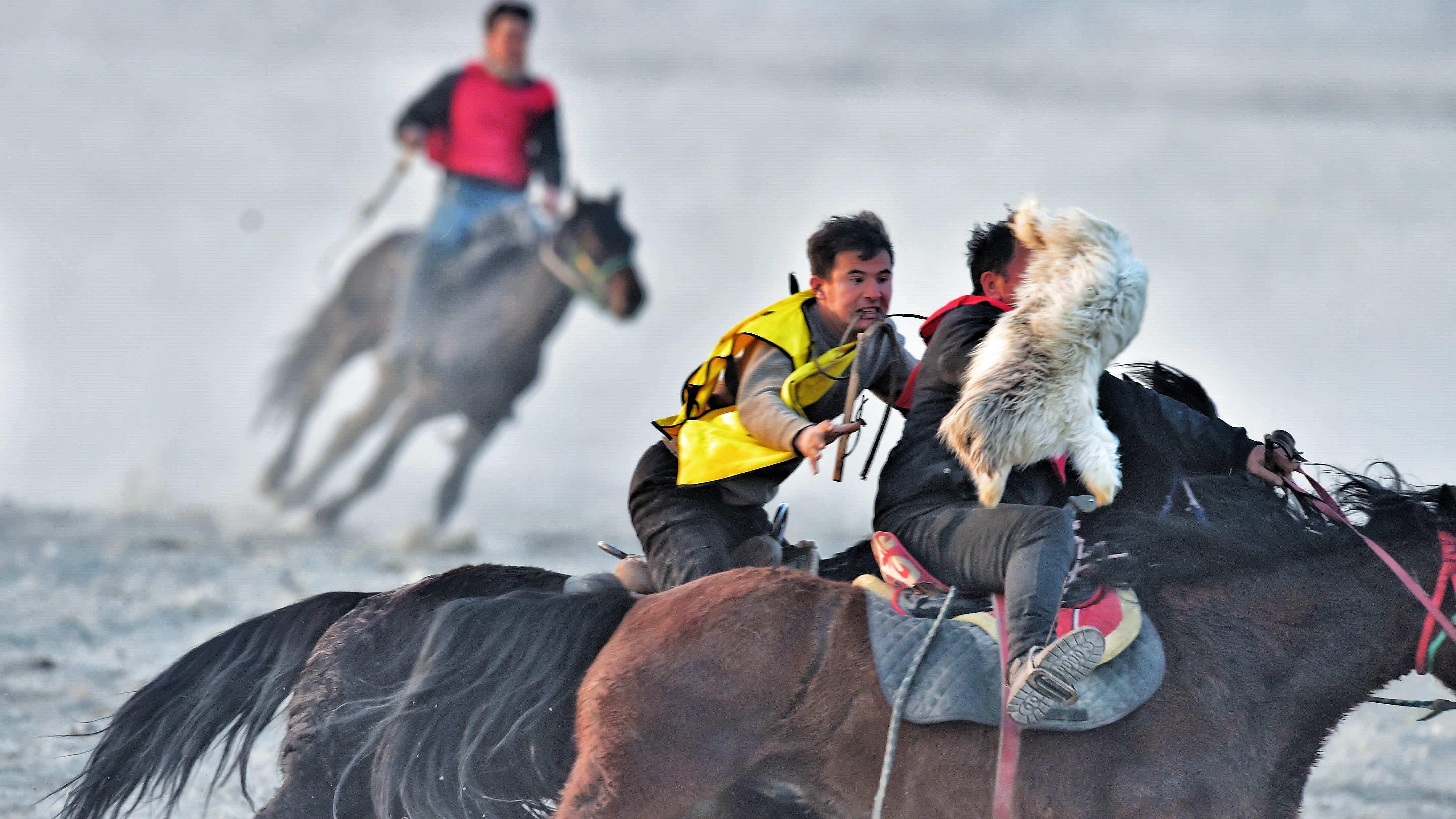 策馬逐羊燃冬日!博湖冬季刁羊賽盡顯民俗活力