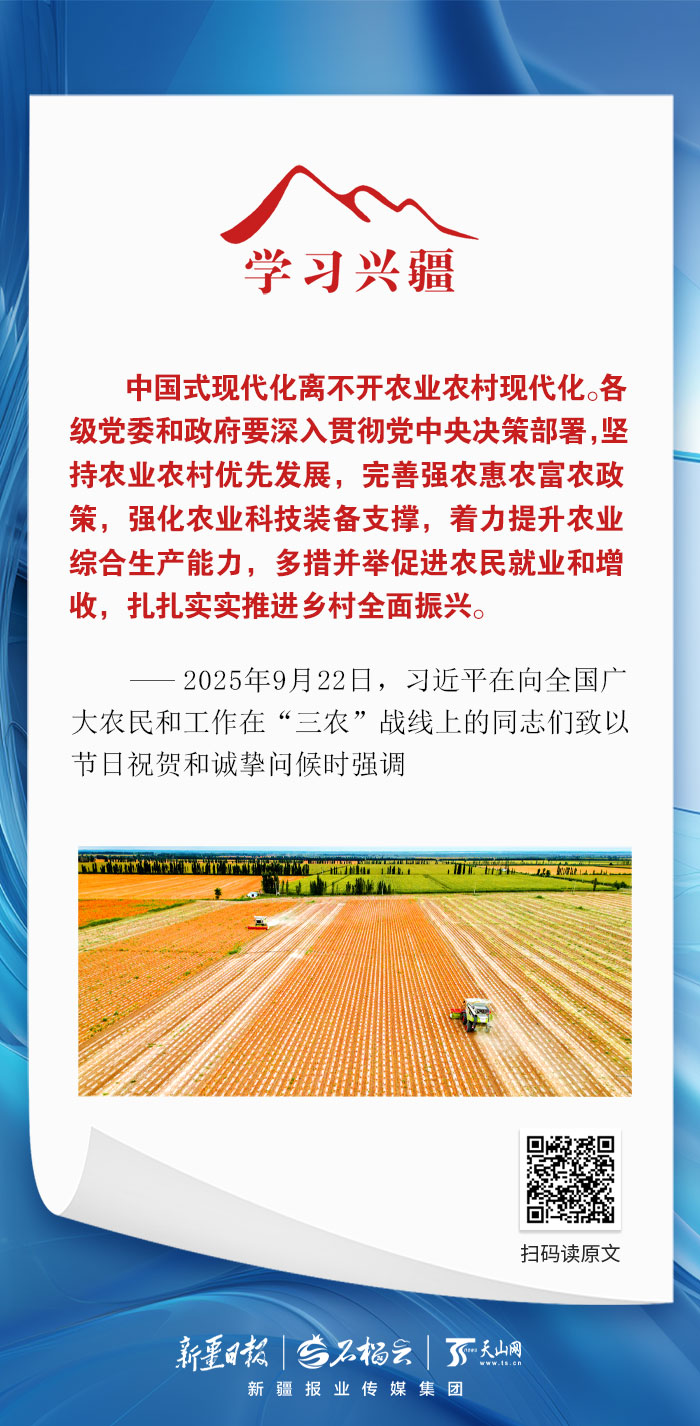——2025年9月22日,習(xí)近平在向全國廣大農(nóng)民和工作在“三農(nóng)”戰(zhàn)線上的同志們致以節(jié)日祝賀和誠摯問候時(shí)強(qiáng)調(diào)