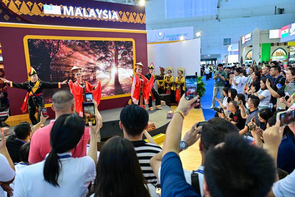6月26日,在第八屆中國-亞歐博覽會上,參觀者在馬來西亞展區(qū)觀看文藝表演。新華社記者 丁磊 攝