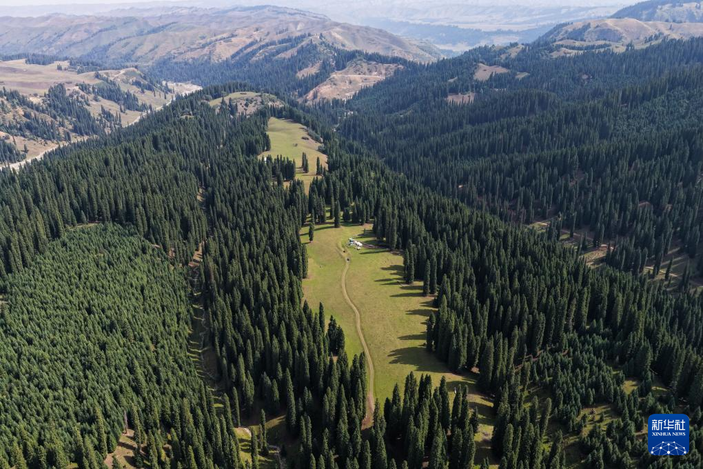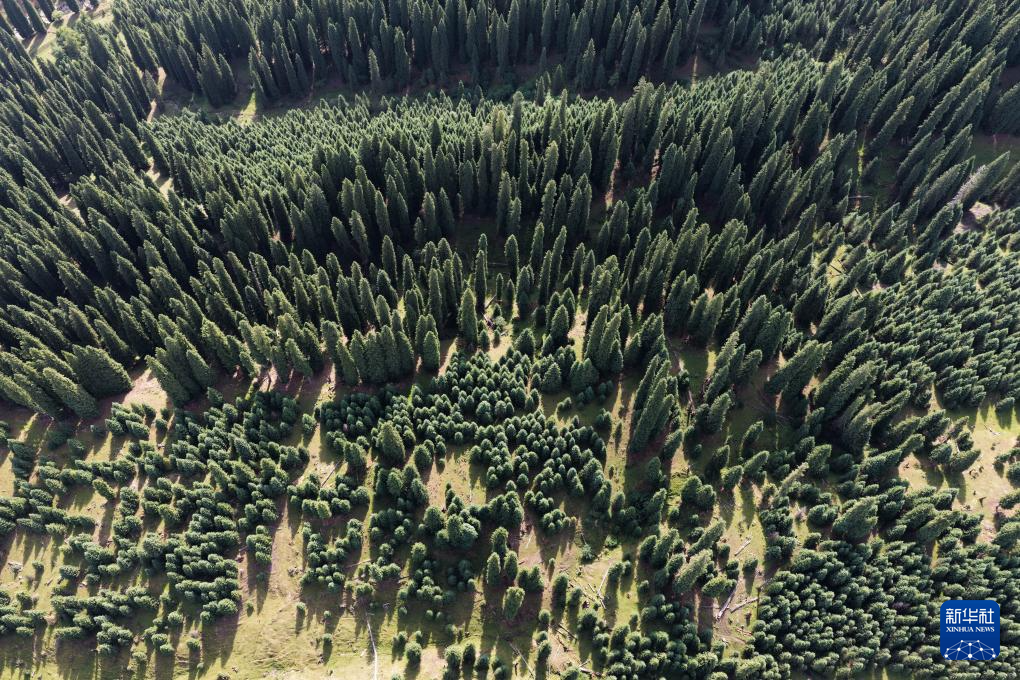 這是8月2日在庫爾德寧拍攝的雪嶺云杉(無人機(jī)照片)。新華社記者 趙宇思 攝