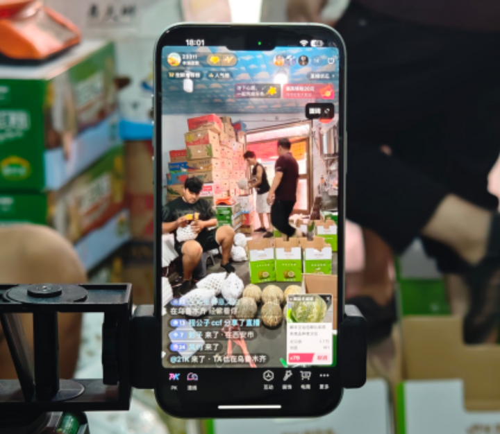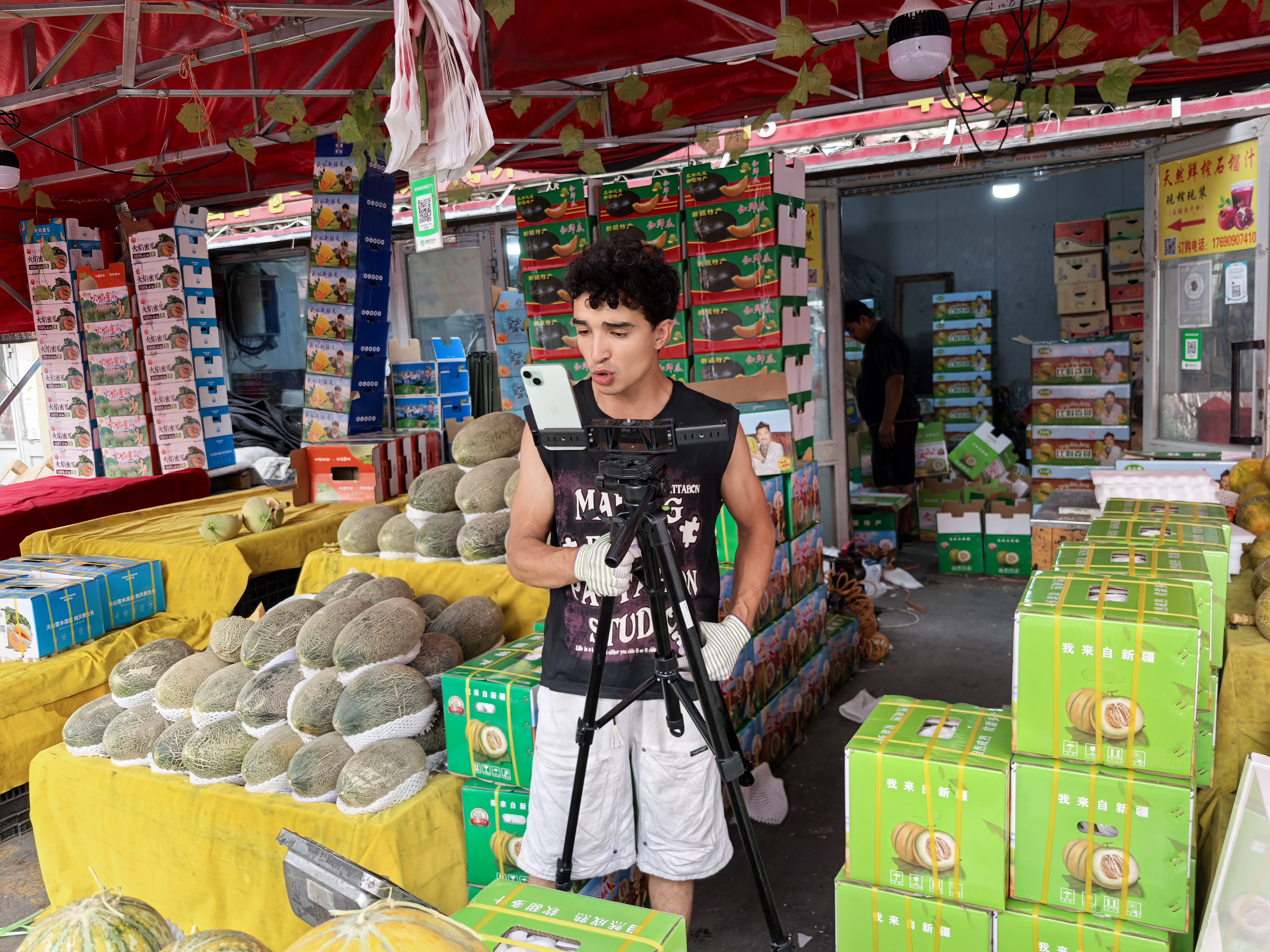 7月29日,新疆一家水果商戶在直播銷售老漢瓜。新華社記者張瑜 攝