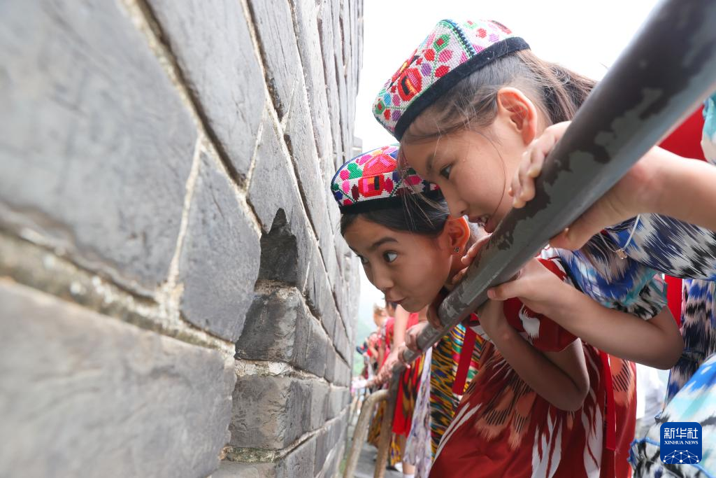 7月28日,帕提曼罕·排日海提(左)和小伙伴在北京八達嶺長城參觀。新華社發(fā)(張利民 攝)