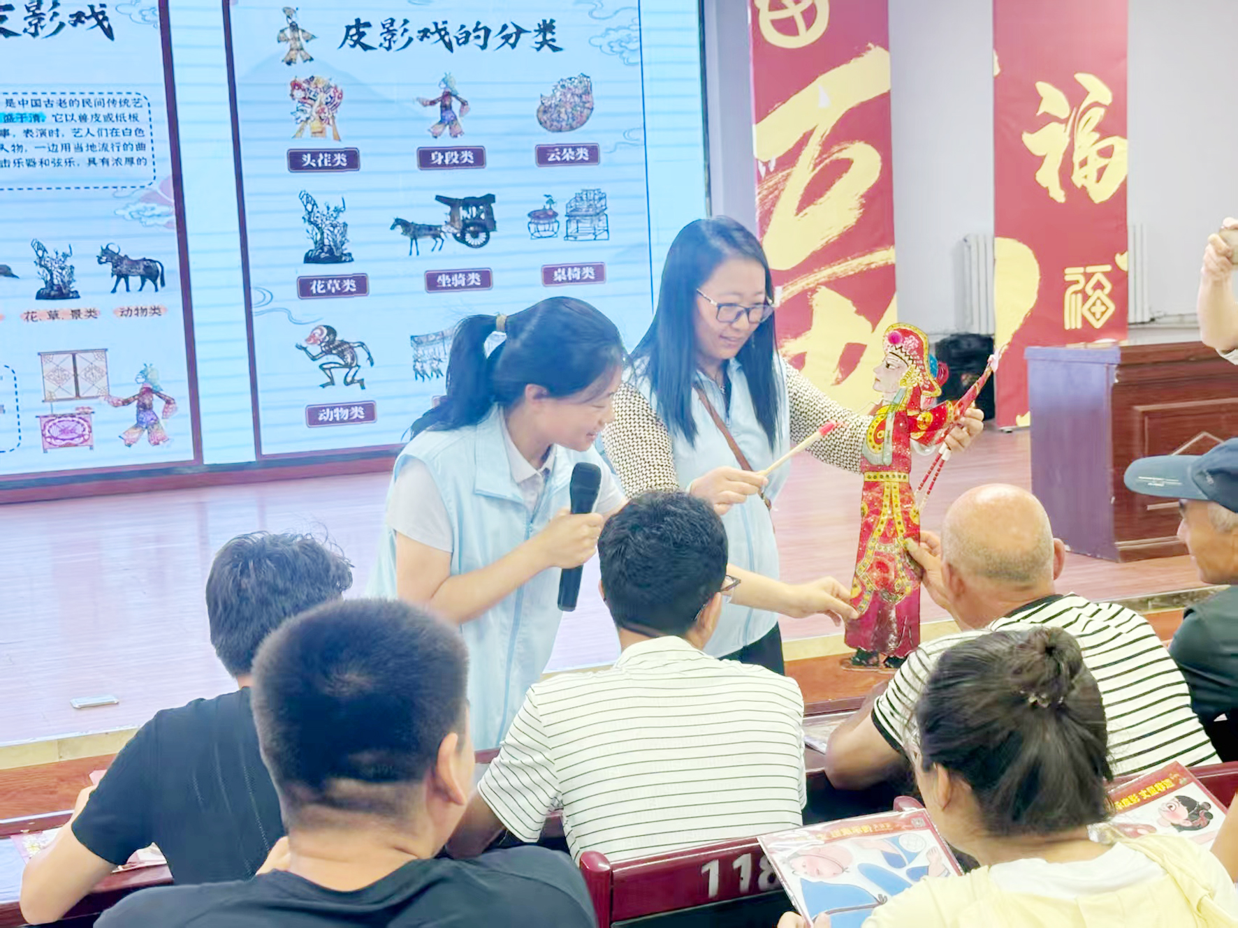 志愿者向和田地區(qū)的百姓展示皮影藝術(shù) 首都圖書館供圖