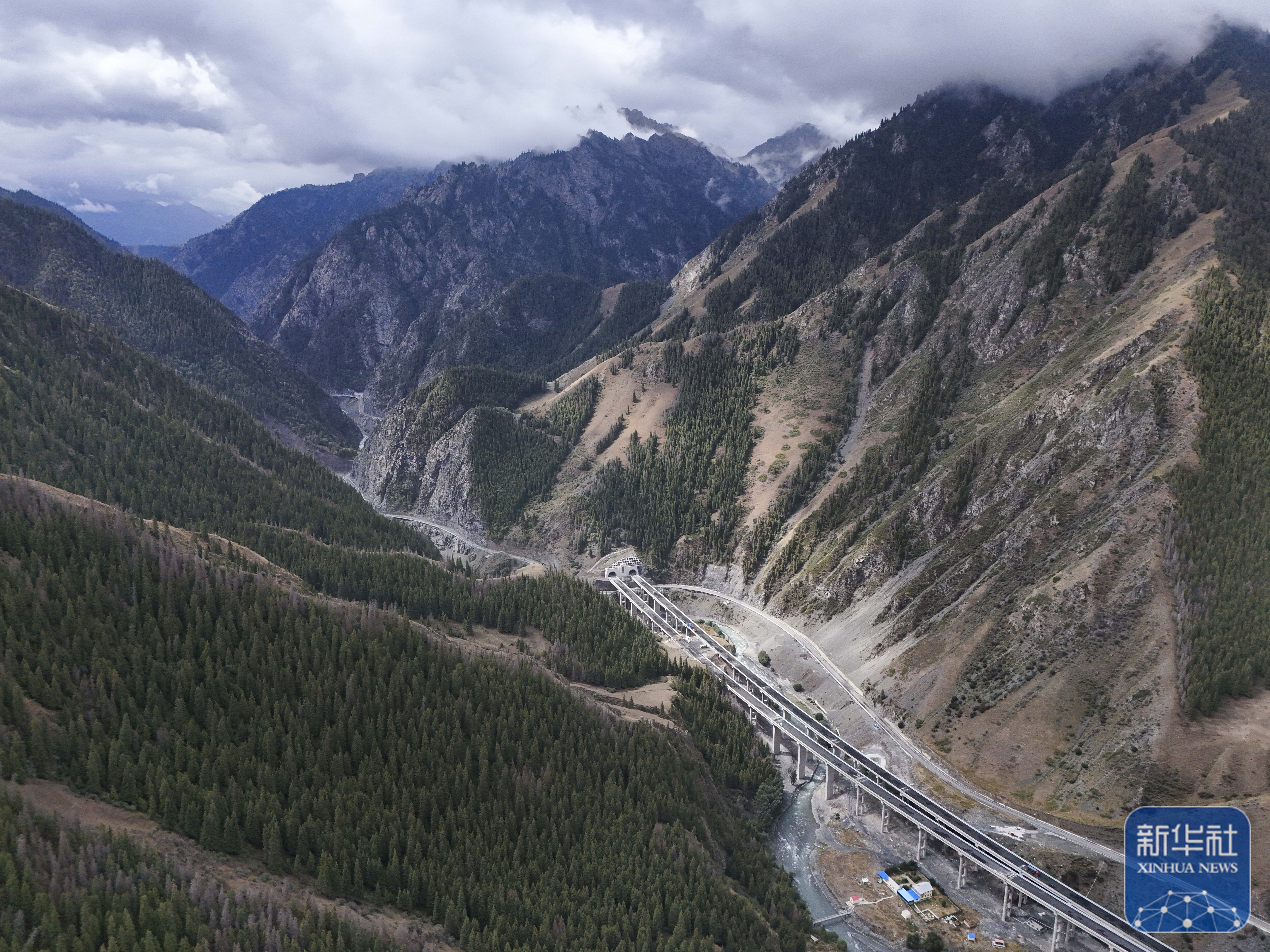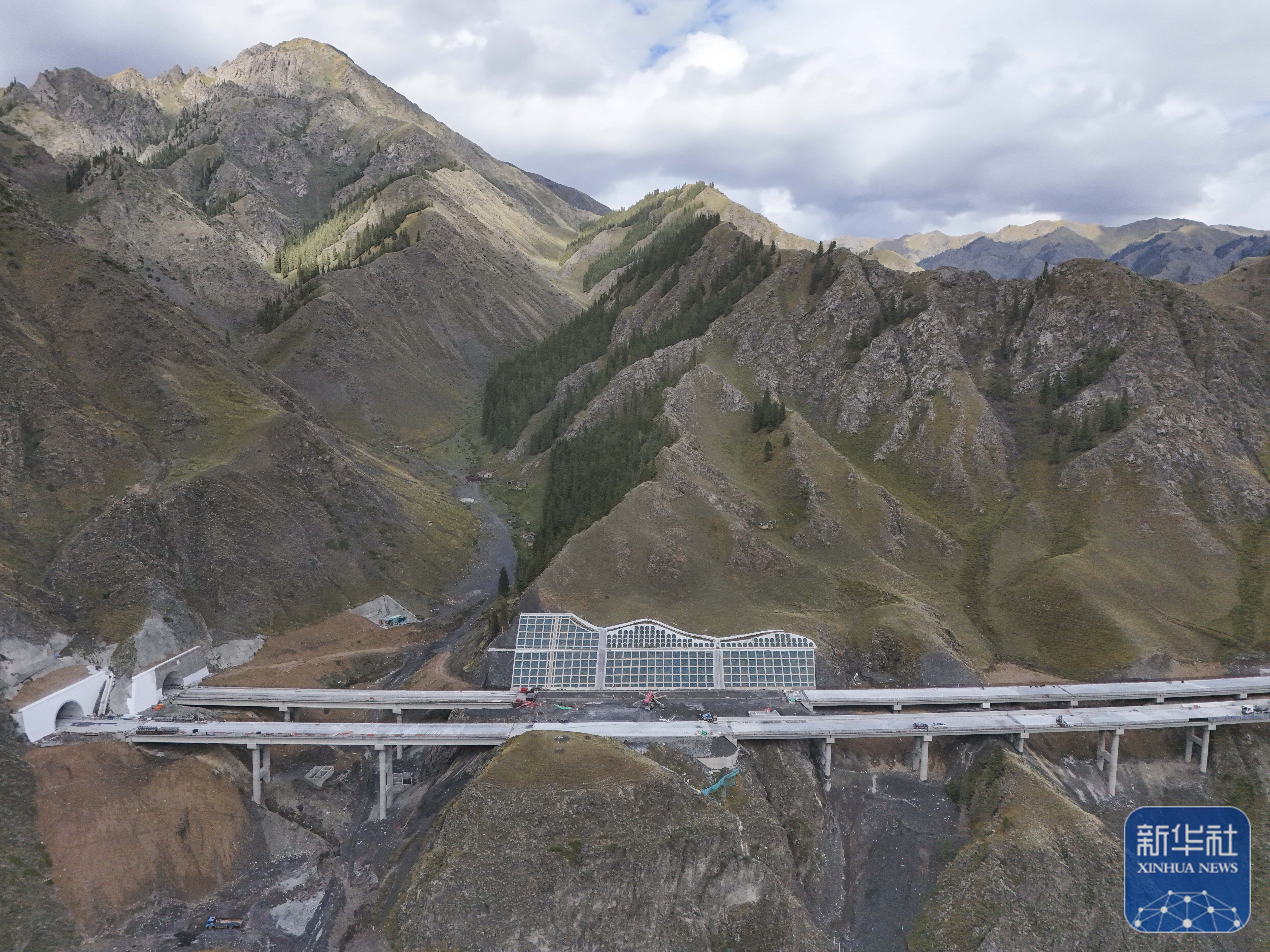 ↑ 8月19日拍攝的新疆烏尉高速公路前峽1號(hào)隧道北端及其附近路段(無(wú)人機(jī)照片)。